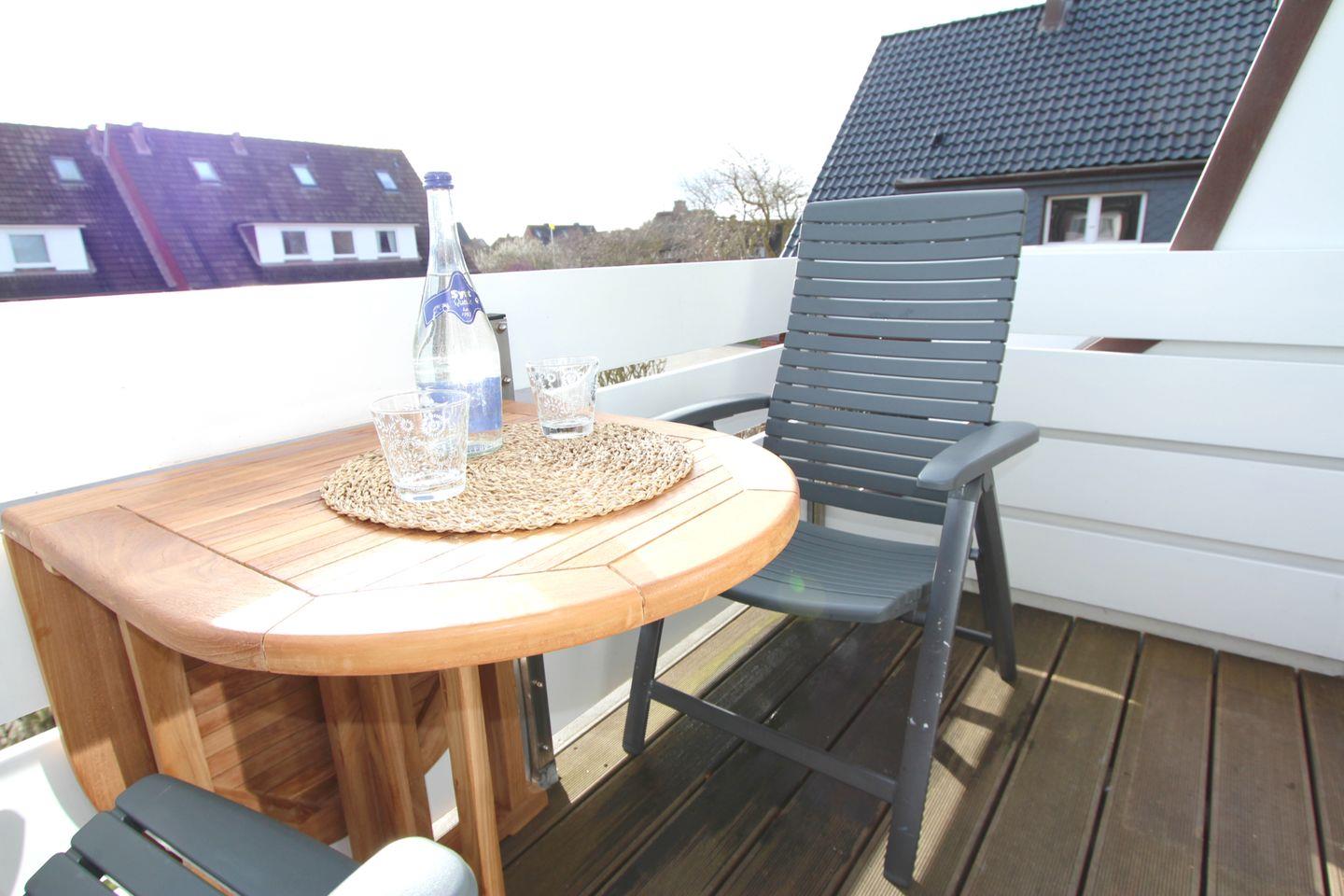 Auf dem idyllischen Süd-Balkon können Sie sich nach einem langen Strandtag ausruhen und bei einem schönen Getränk den Tag ausklingen lassen.