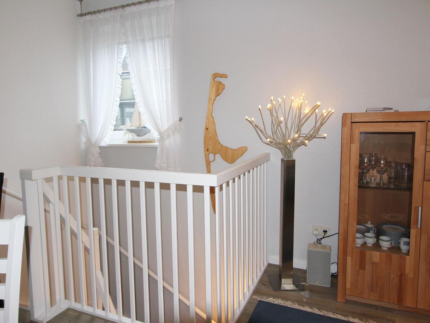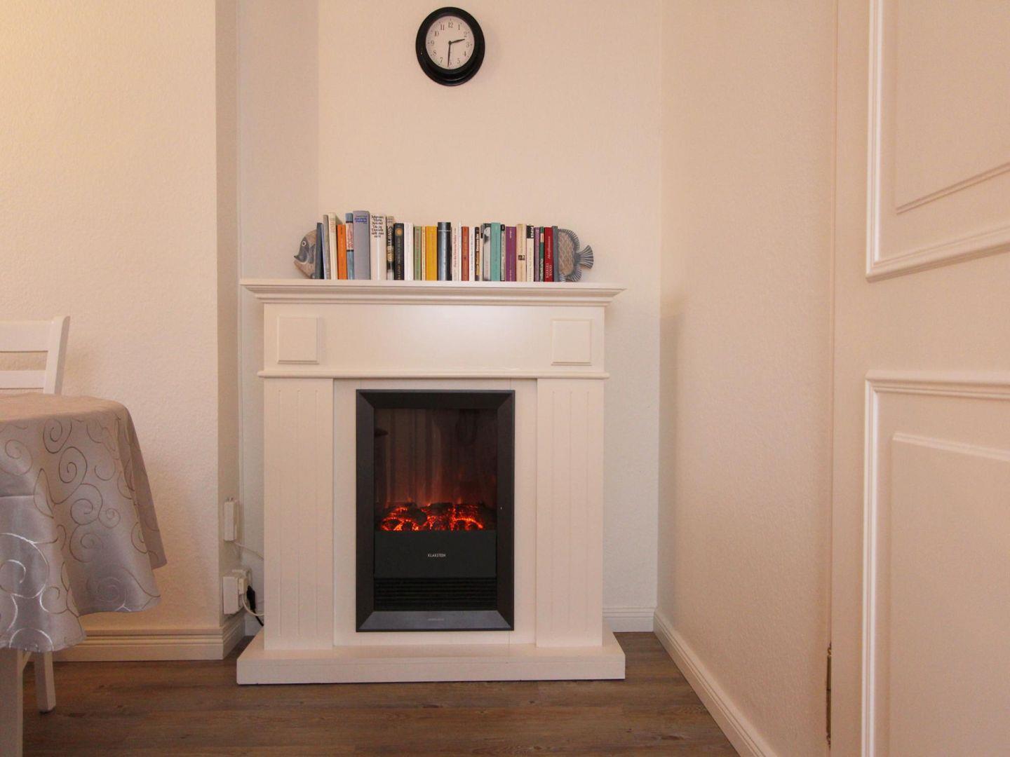 Im gemütlich eingerichteten Wohnbereich im Erdgeschoss sorgt der Elektro-Kamin auch an kalten Tagen für ein heimeliges Gefühl. Hier können Sie optimal entspannen.