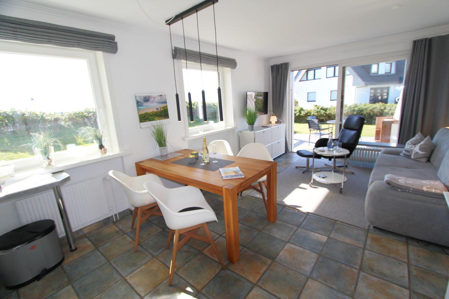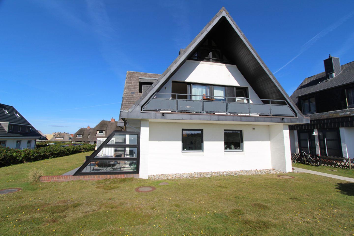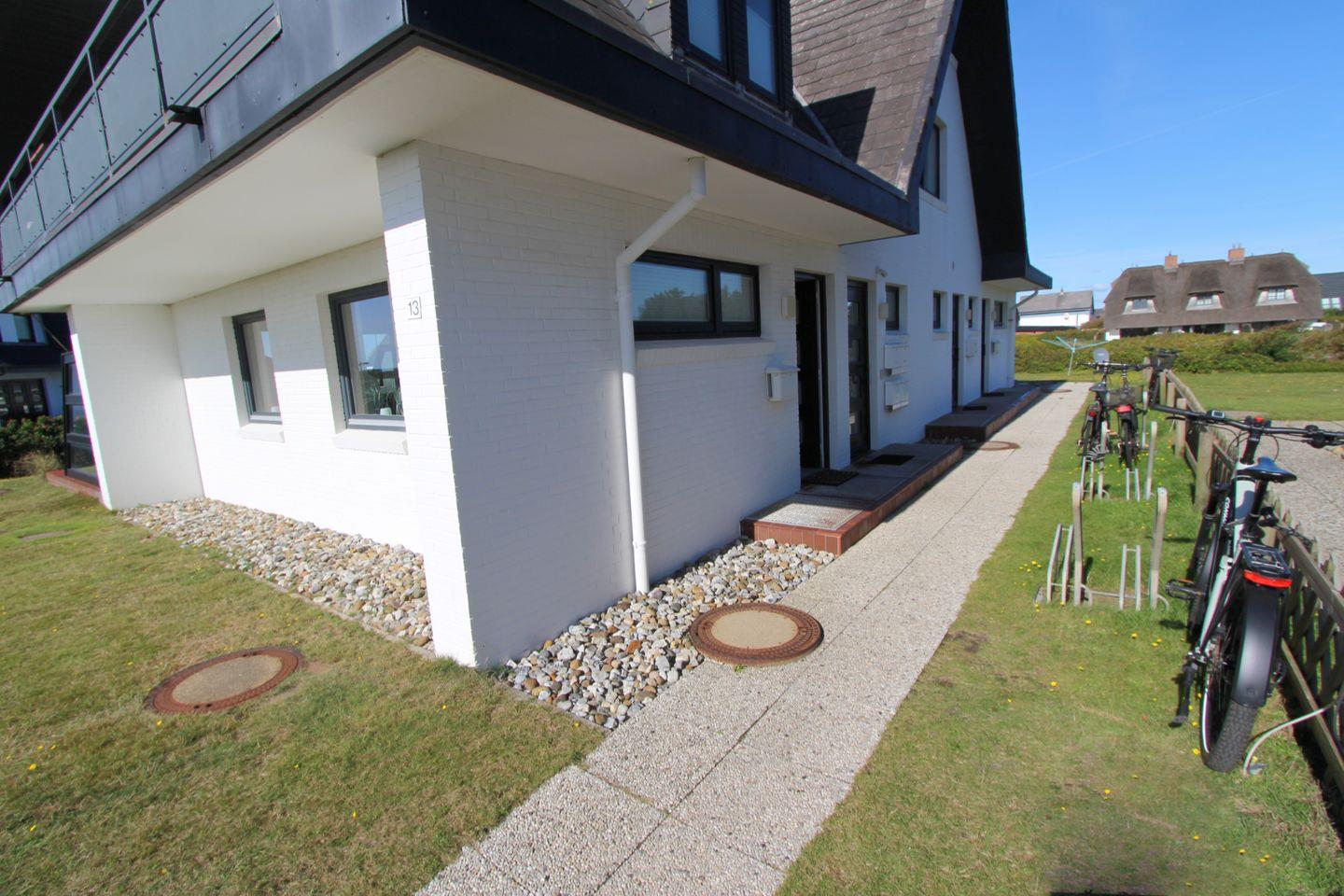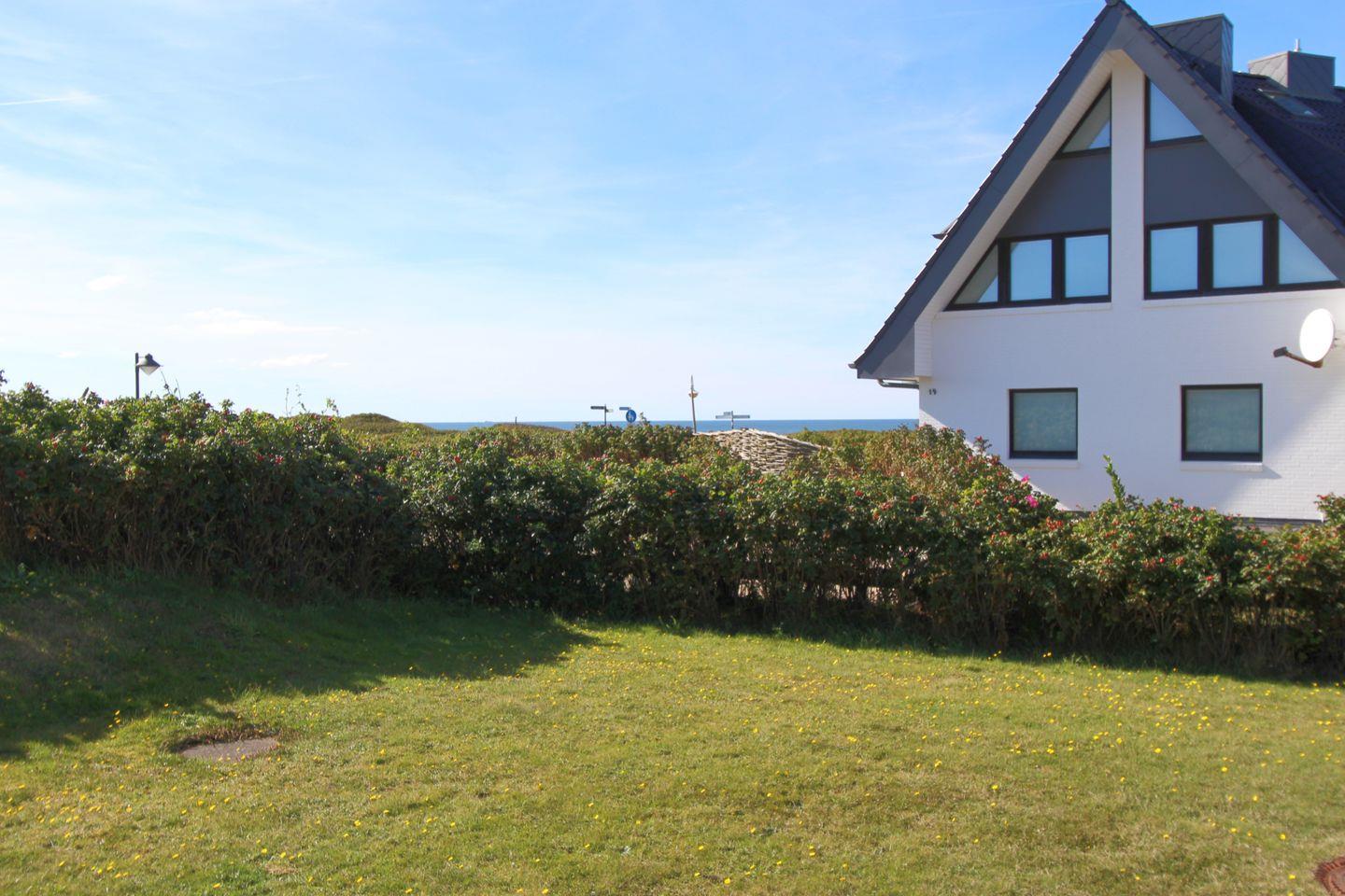 Das großzügige Grundstück des Hauses in der Fernsicht 13 und die einzigartige Lage machen dieses Urlaubsdomizil zu einem wahren Geheimtipp. Schalten Sie vom stressigen Alltag ab und lassen Sie den beruhigenden Ausblick auf die Heide und die blaue See auf sich wirken. In Süd-Wenningstedt am Hauptradweg der Insel situiert, eignet sich diese Wohnung ideal, um die Insel per Rad zu erkunden. Zu jedem Appartement gehört ein Pkw-Stellplatz. Ab 2025 sind Haustiere leider nicht mehr erlaubt.