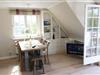 Im Obergeschoss des Hauses auf der Wohn-Essebene befindet sich das Schlafzimmer mit zwei gemütlichen Einzelbetten. Ferner finden Sie das Doppelschlafzimmer mit eigenem TV-Gerät und angrenzendem Gäste-WC im Dachgeschoss.