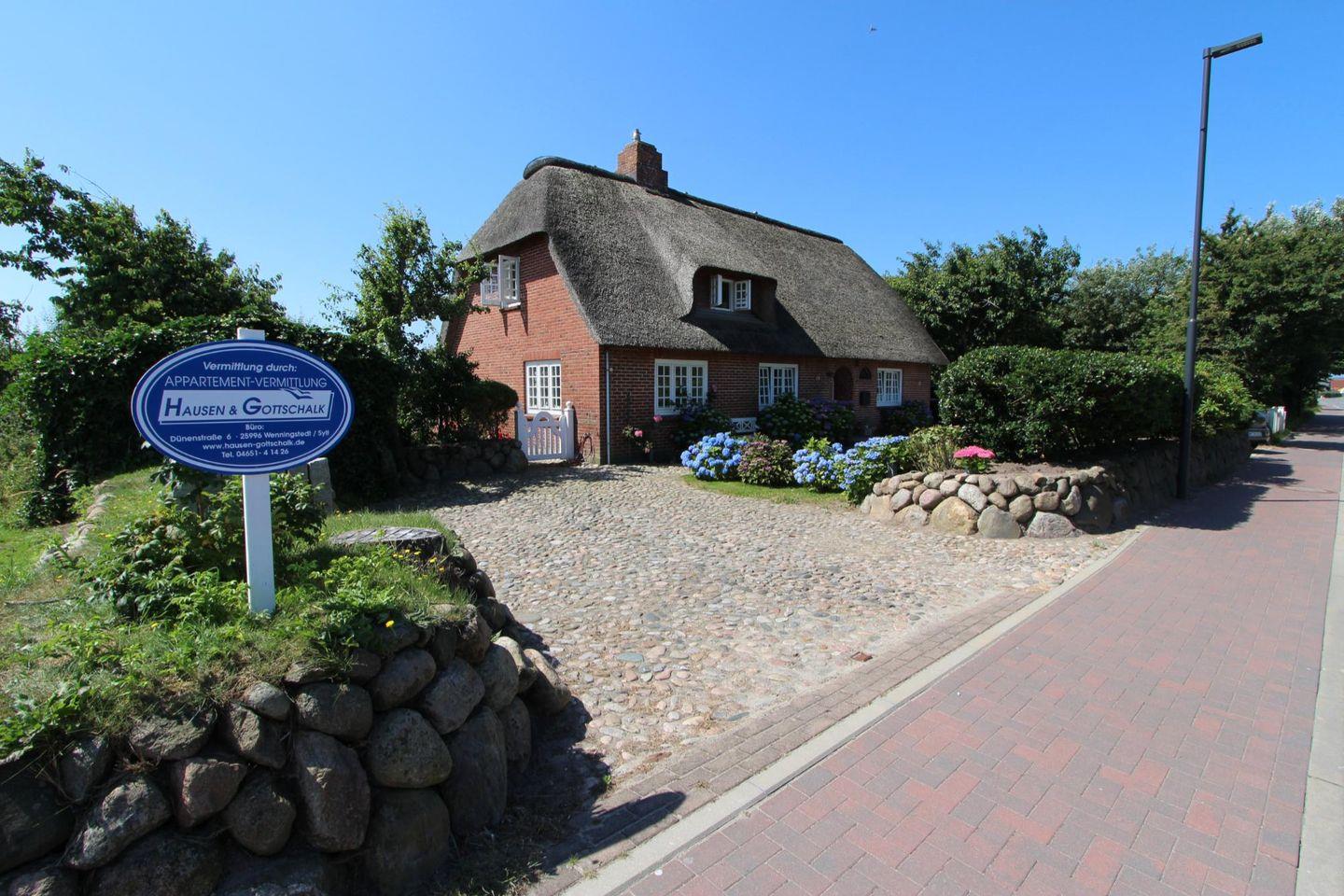Diese großzügige Haushälfte unter Reet liegt zwischen den Ortsteilen Wenningstedt und Braderup. Wohnzimmer mit Kamin, zwei Schlafzimmer, zwei Bäder und ein wunderschöner Garten bieten alles für einen perfekten Urlaub. Auf Anfrage dürfen Sie einen Hund mitbringen!