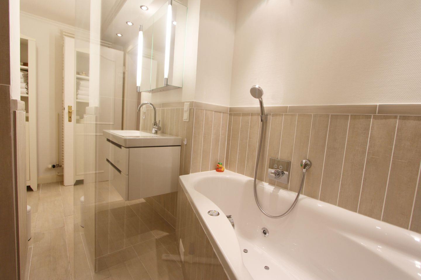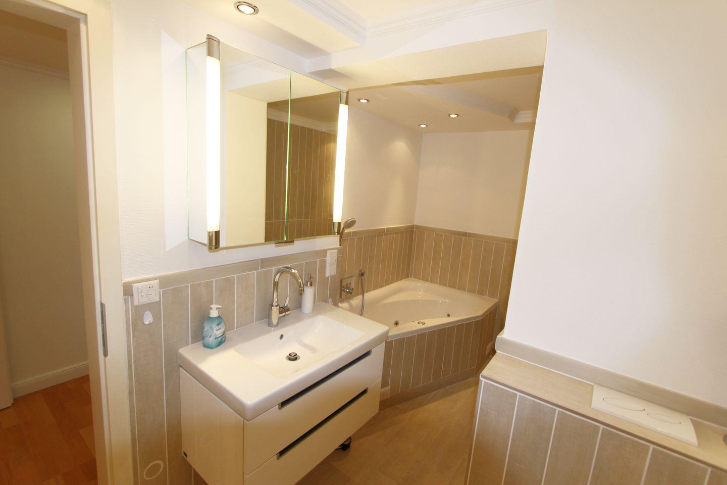 Im Erdgeschoss befindet sich ein Gäste-WC, im Untergeschoss liegt das Badezimmer mit Dusche und zusätzlicher Badewanne und WC. Ferner stehen Ihnen eine Sauna, eine Waschmaschine und ein Trockner gegen Gebühr im Nebenhaus zur Verfügung.