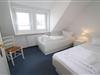 Die Ferienwohnung bietet Ihnen zwei Schlafzimmer. Im Obergeschoss finden Sie den Schlafraum mit zwei Einzelbetten. Darüber hinaus befindet sich im Dachgeschoss ein Schlafzimmer mit einem Doppelbett und angrenzendem Duschbad mit WC.