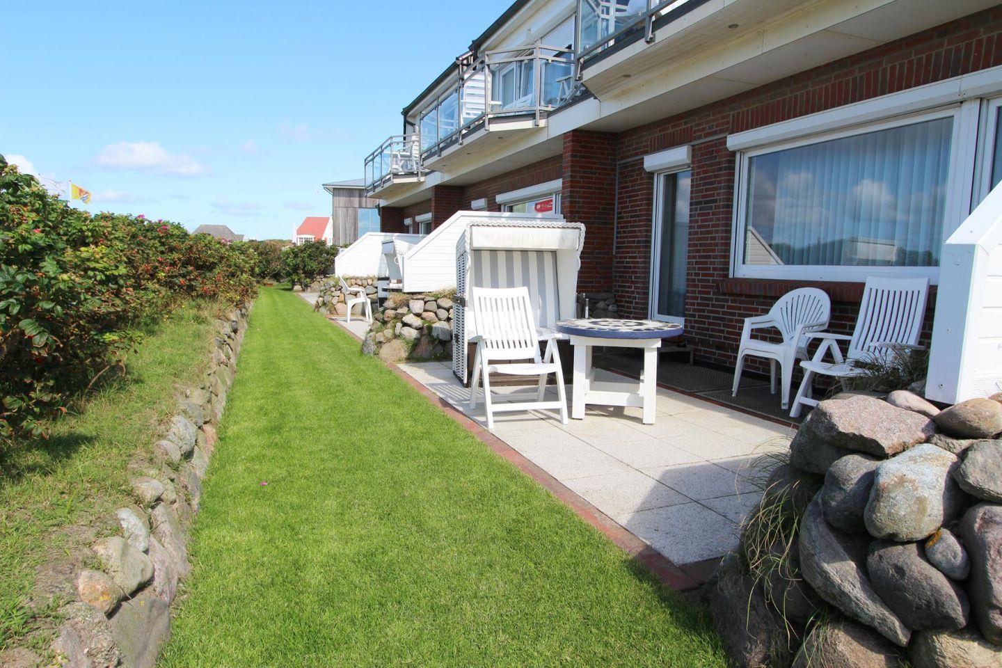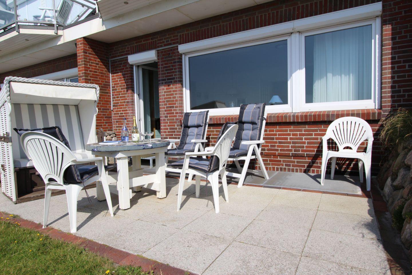 Genießen Sie auf der West-Terrasse die Sylter Abendsonne! Durch den Panorama-Blick auf die raue See wird dieser Urlaub zu einem unvergesslichen Erlebnis!