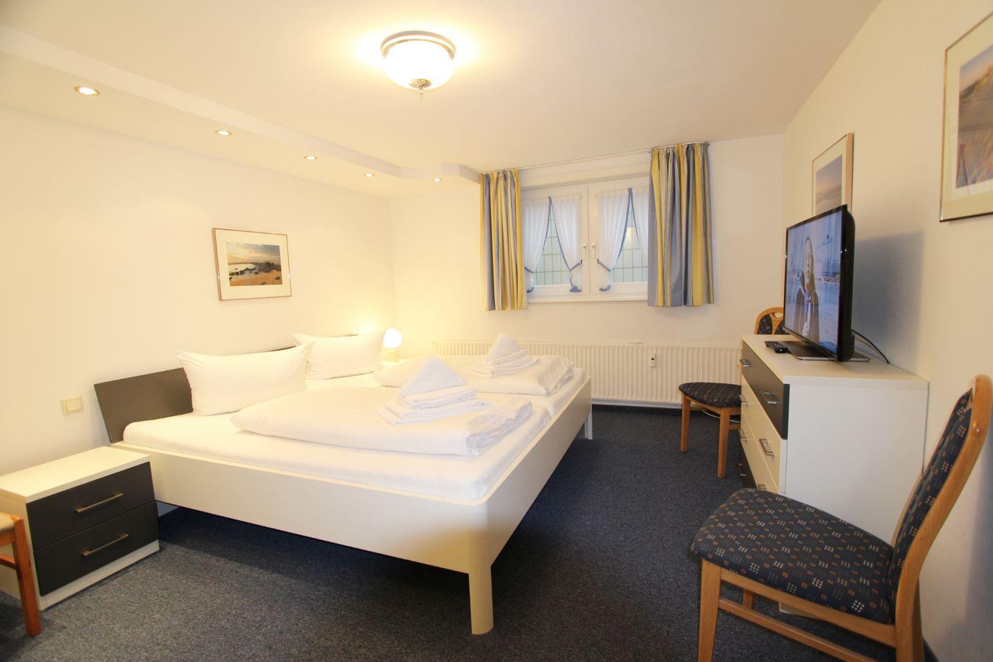Im Untergeschoss der Ferienwohnung finden Sie zwei Schlafzimmer. Das größere Schlafzimmer verfügt über ein Doppelbett. Ferner können Sie die Nächte im zweiten Schlafzimmer in zwei Einzelbetten verbringen.