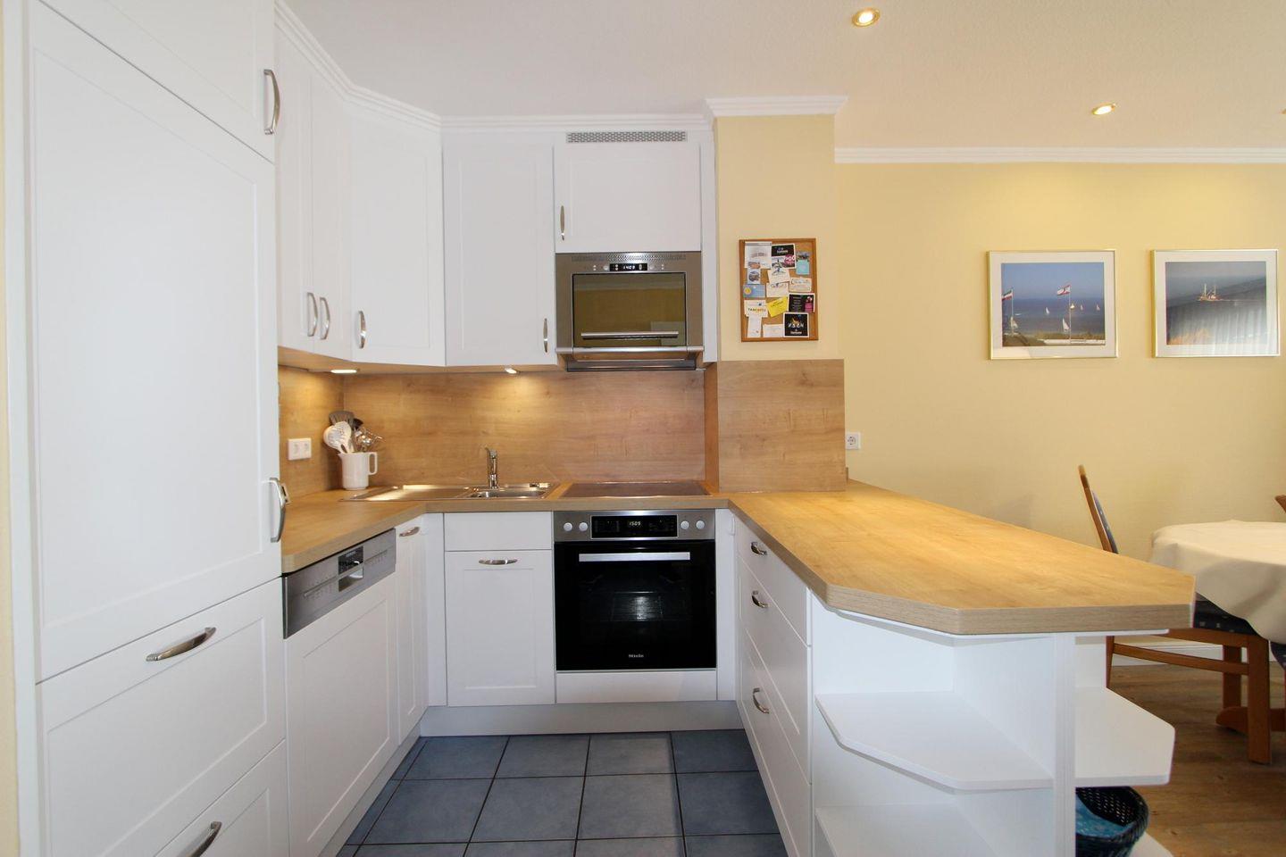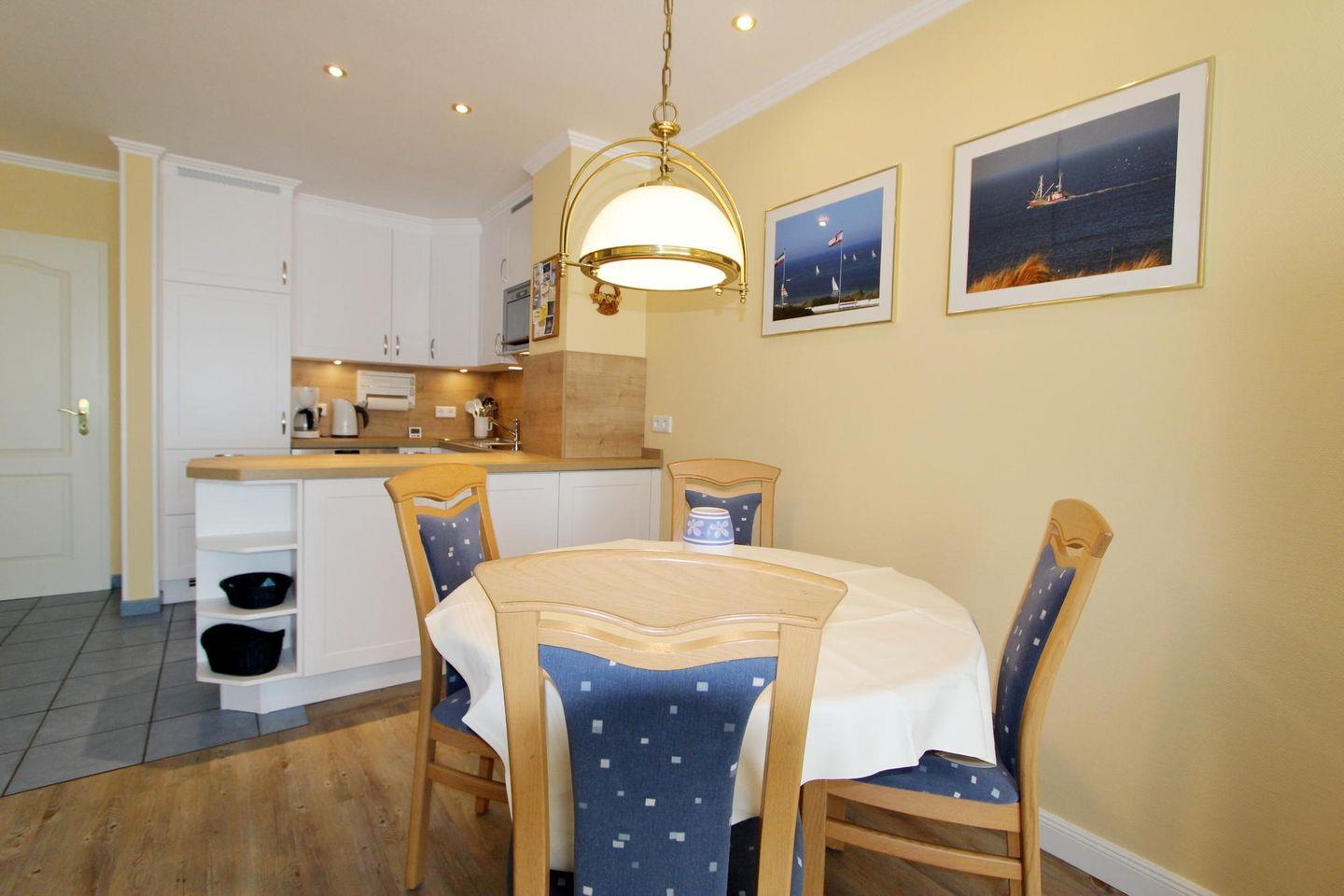 Der Essbereich befindet sich im großen Wohnraum im Erdgeschoss und bietet Platz für vier Personen. Die offene Küche eignet sich hervorragend zum gemeinsamen zu Kochen.