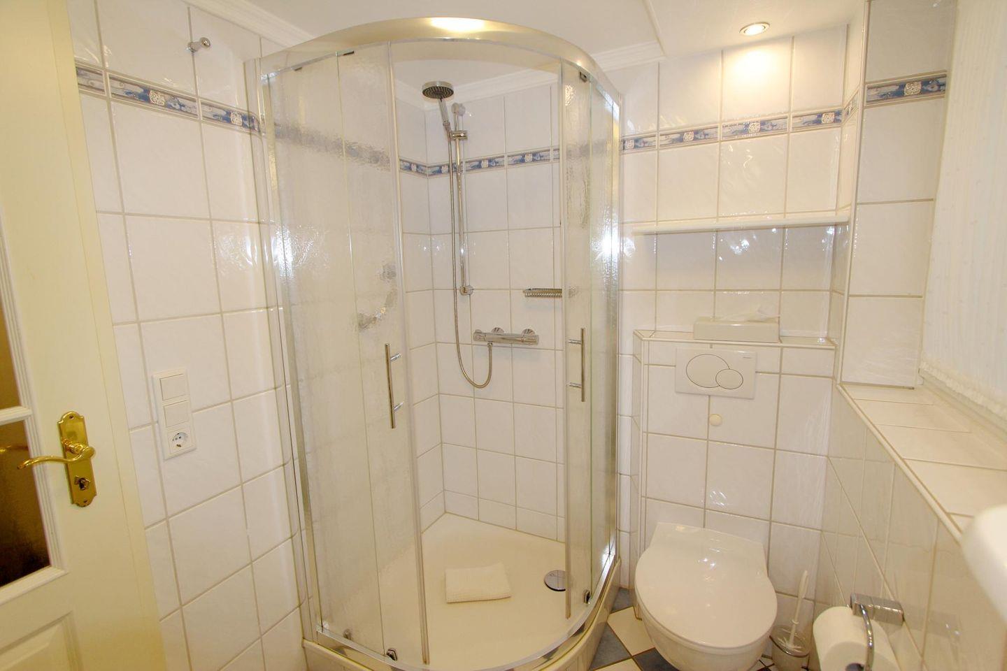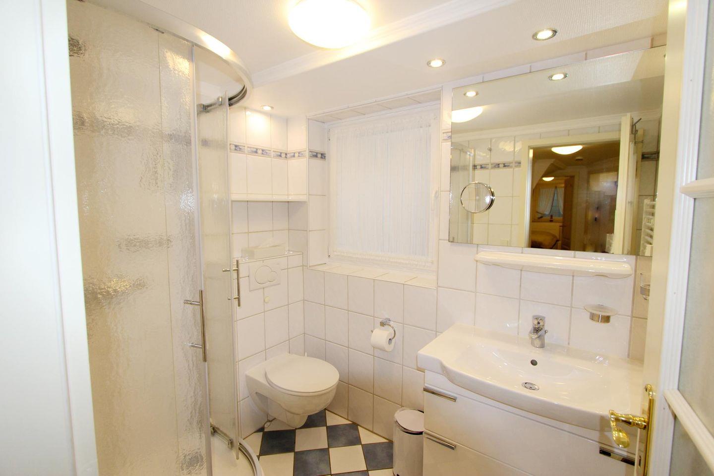 In dieser Ferienwohnung befinden sich zwei Badezimmer. Diese verteilen sich auf die beiden Ebenen und sind jeweils mit Dusche und WC ausgestattet. Ferner stehen Ihnen eine Sauna, eine Waschmaschine und ein Trockner gegen Gebühr im Nebenhaus zur Verfügung.
