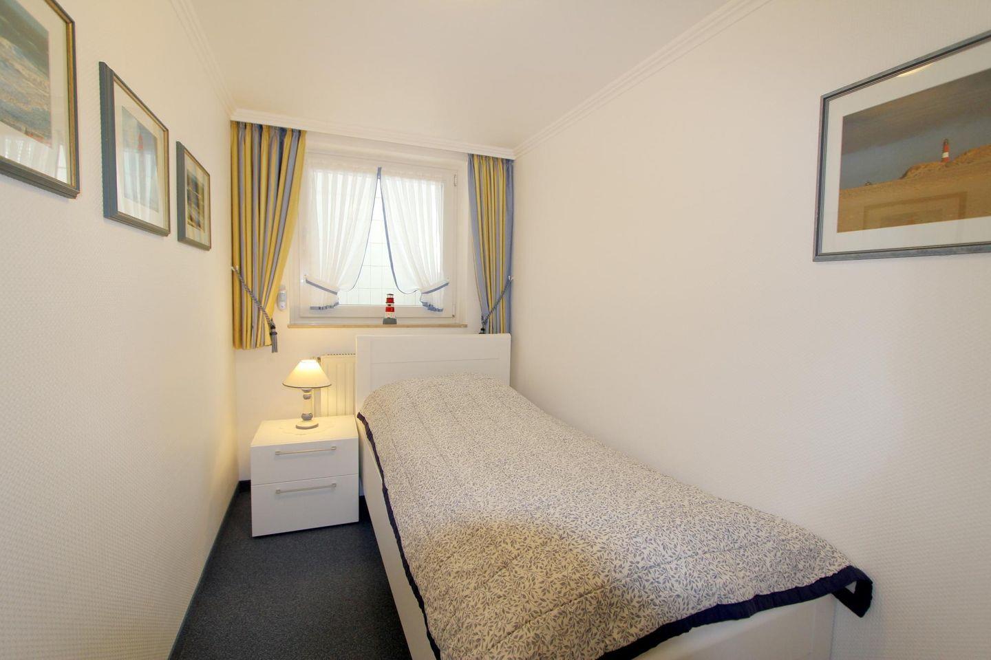 Im Untergeschoss der Ferienwohnung finden Sie drei Schlafzimmer. Das größere Schlafzimmer verfügt über ein Doppelbett. Die beiden weiteren Schlafräume sind jeweils mit einem komfortablen Einzelbett ausgestattet.