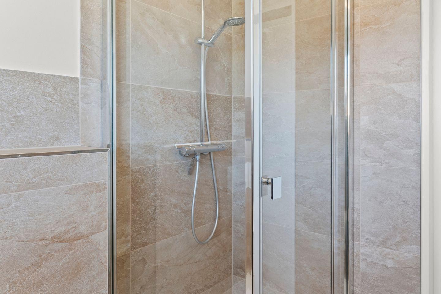 Das Duschbad mit WC bietet genügend Platz und das Fenster lässt Tageslicht herein. Hier können Sie den Sand und das Salz nach einem sonnigen Strandtag von der Haut waschen.