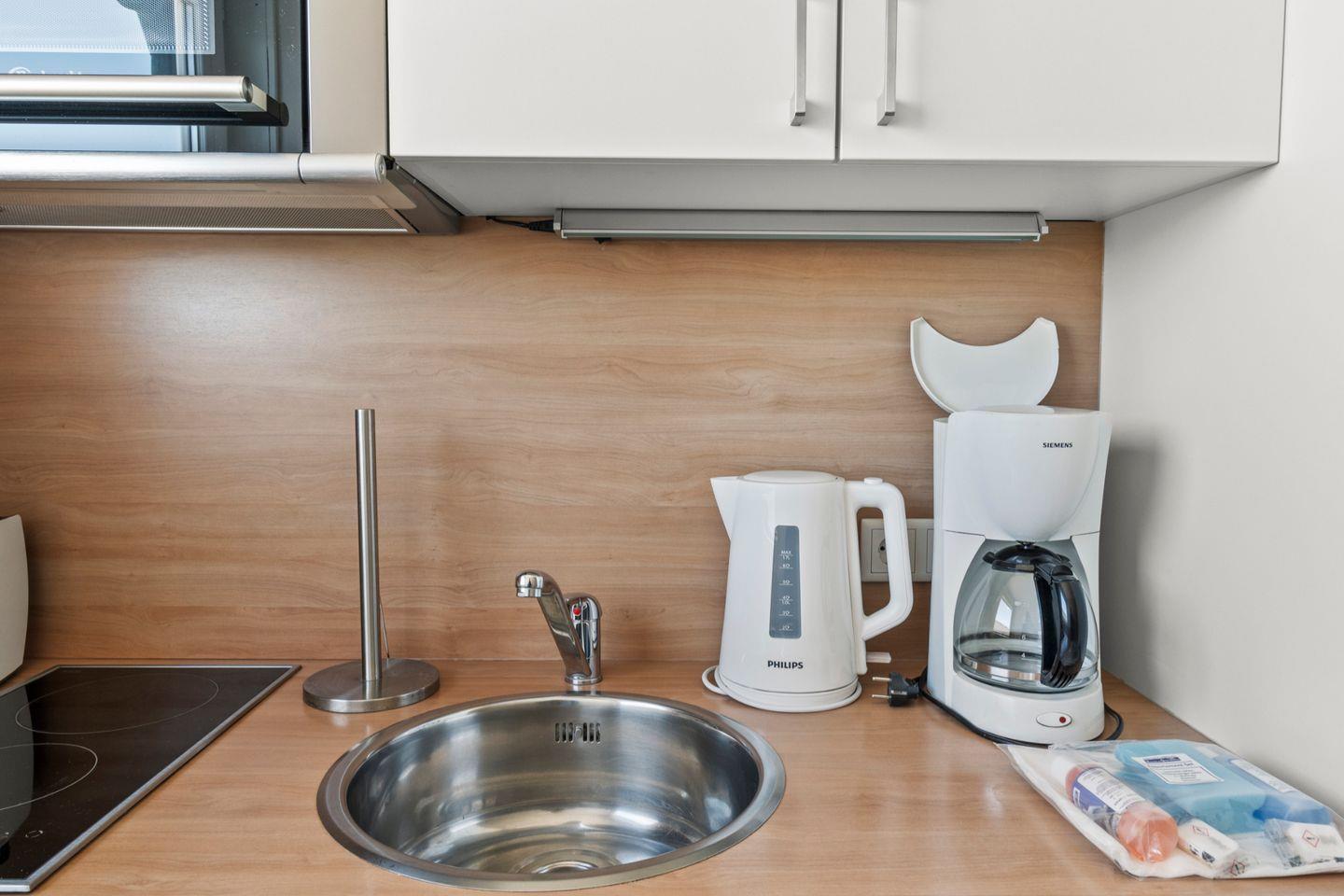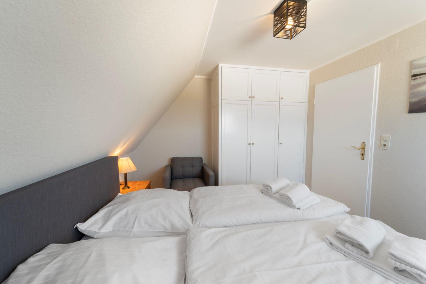 Sie schlafen in einem komfortablen Doppelbett und können Ihre Kleidung einfach im Kleiderschrank verstauen.