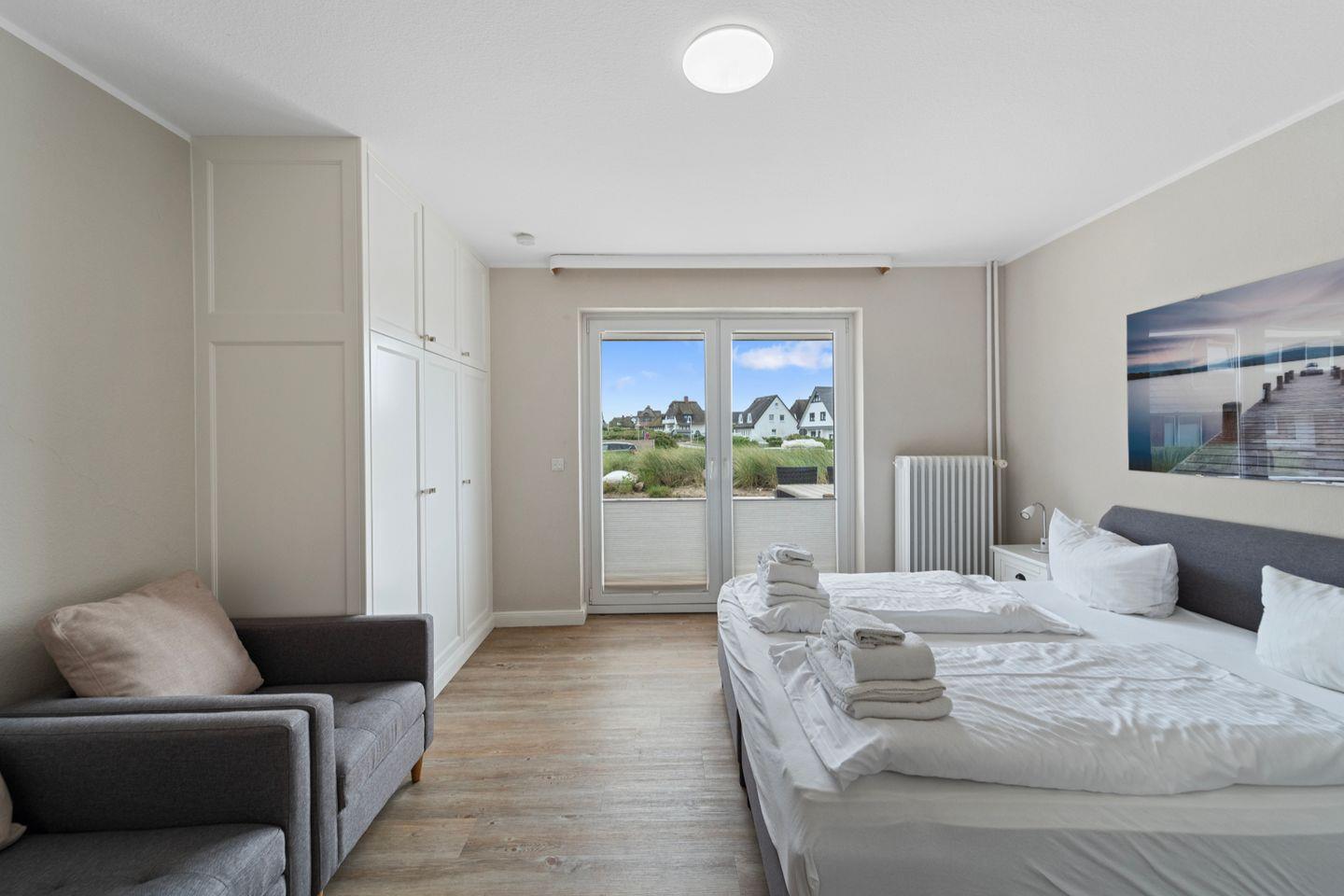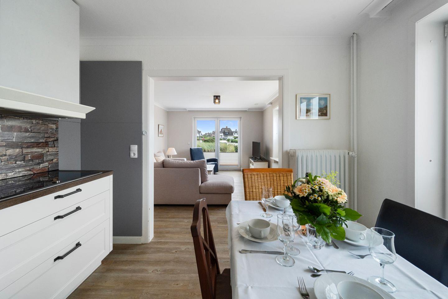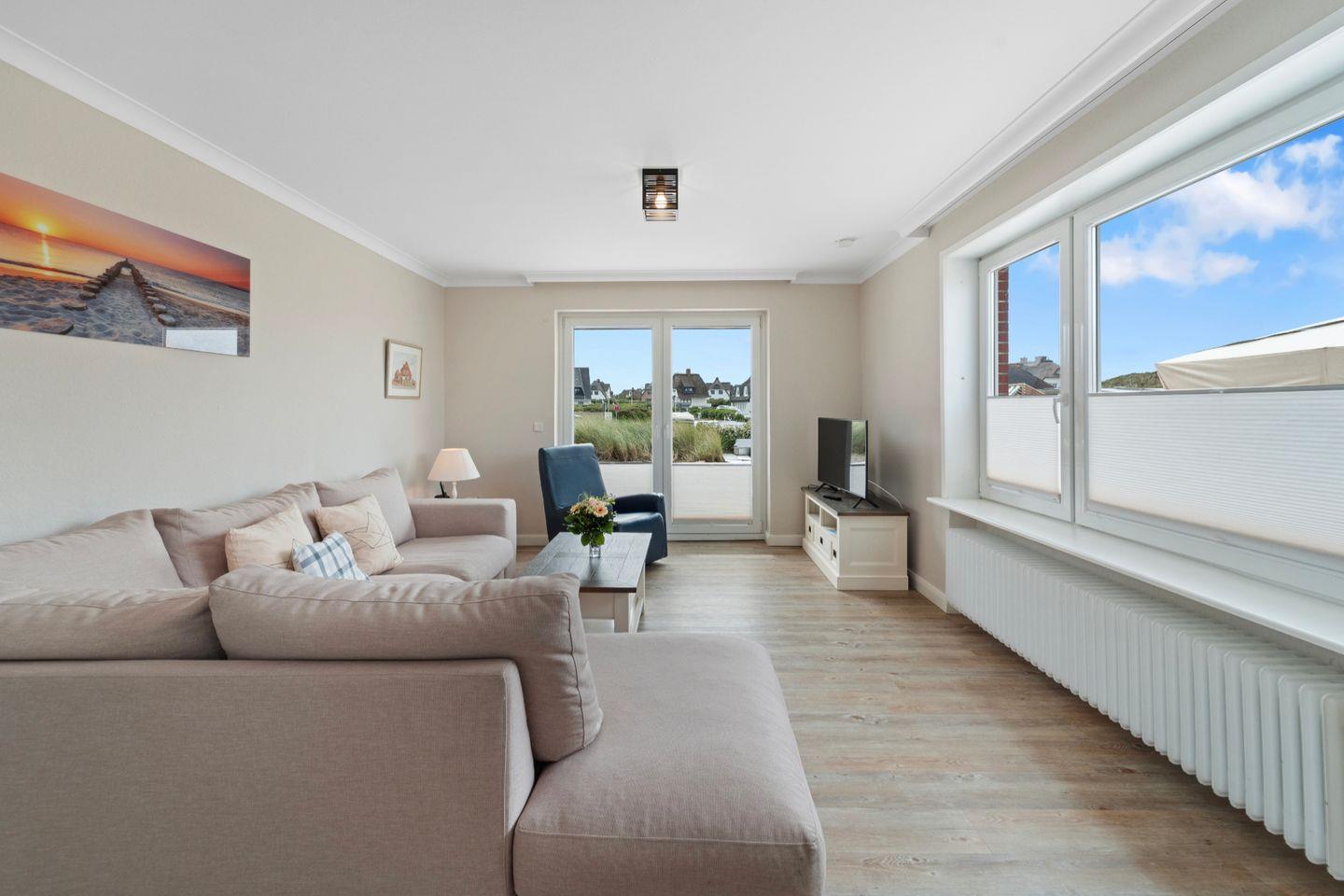 Die helle Drei-Zimmer-Wohnung auf einer Ebene lädt mit ihrer exponierten Lage zum entspannten Strandurlaub auf Sylt ein. Verbringen Sie hier wundervolle Urlaubstage mit Familie oder Freunden. Ab 2026 sind leider keine Haustiere mehr erlaubt.