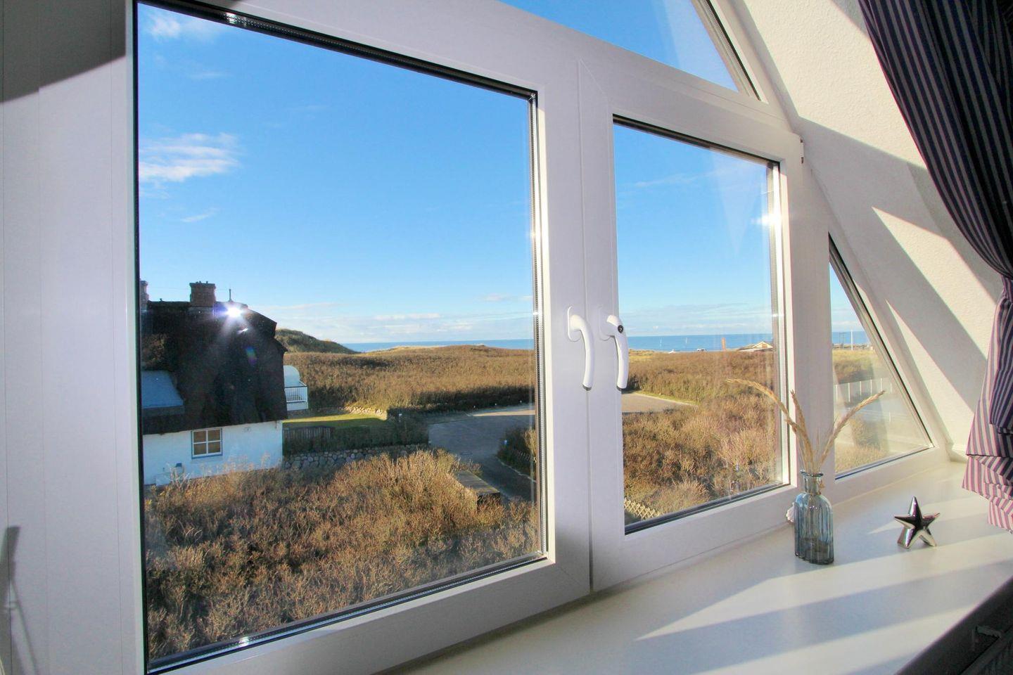 Dieses Ferienappartement verfügt über zwei separate Schlafräume. Im Schlafzimmer auf der Wohnebene nächtigen Sie in zwei komfortablen Einzelbetten. Der Schlafraum im Dachgeschoss, der über eine Wendeltreppe zu erreichen ist, bietet ein Doppelbett und fantastischen Ausblick auf die Nordsee. Ein einmaliges Erlebnis morgens aufzustehen und direkt einen Blick auf die blaue See zu werfen!