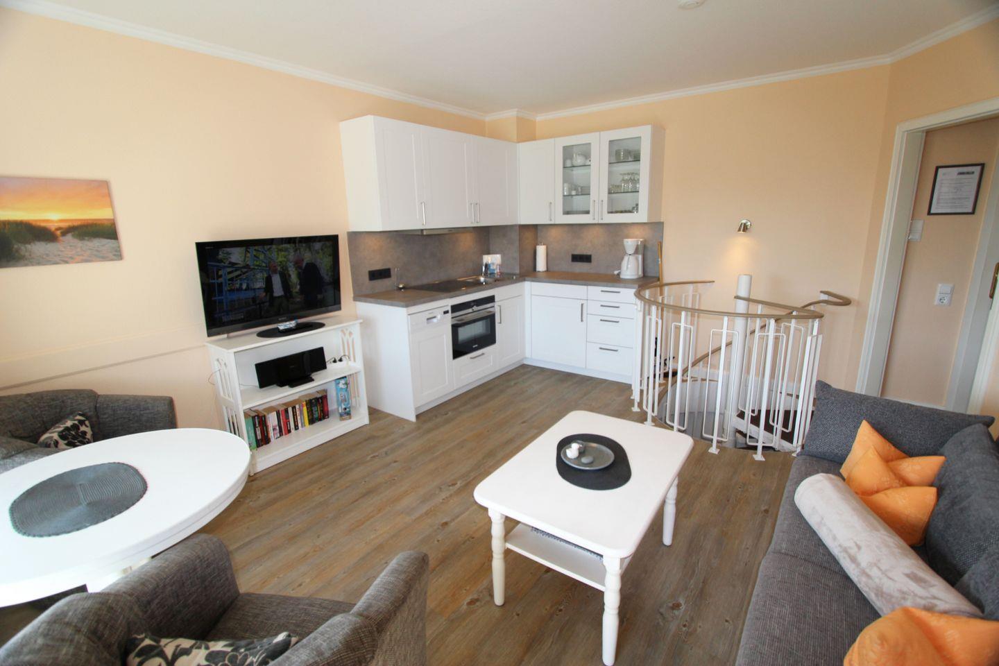 Liebevoll gestaltete Ferienwohnung über zwei Etagen mit schönem Gartenblick. Hier genießen Sie modernen Komfort gepaart mit einer zentralen Lage – ideal, wenn Sie die Insel erkunden oder einfach den nahgelegenen Strand genießen möchten.