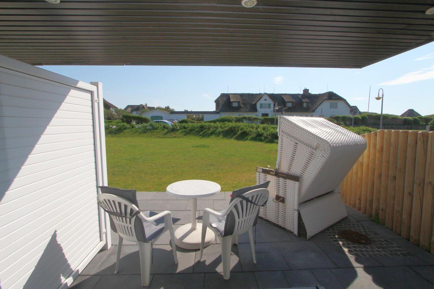 Genießen Sie auf der Süd-Terrasse die Sonne und den herrlichen Gartenblick. Hier können Sie mit einem ausgiebigen Frühstück unter freiem Himmel optimal in einen neuen Urlaubstag auf Sylt starten.