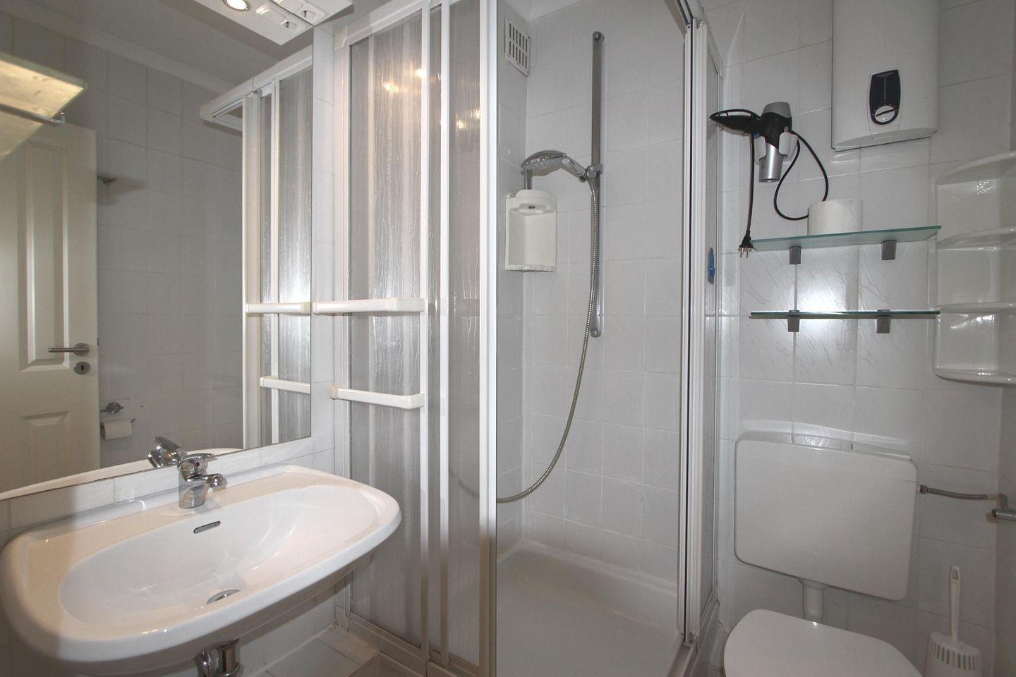 Im Bad nutzen Sie Dusche und WC. Außerdem stehen Ihnen Waschmaschine und Trockner als Münzgeräte im Mieterkeller zur Verfügung.