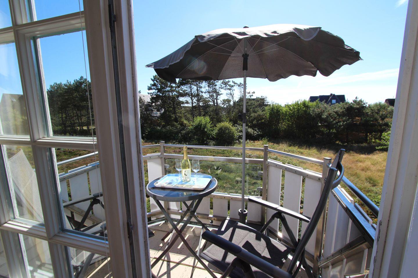 Vom Balkon aus haben Sie besten Blick auf das schöne Heidestück hinterm Haus und können sich hier ausgiebig in der Sonne erholen.