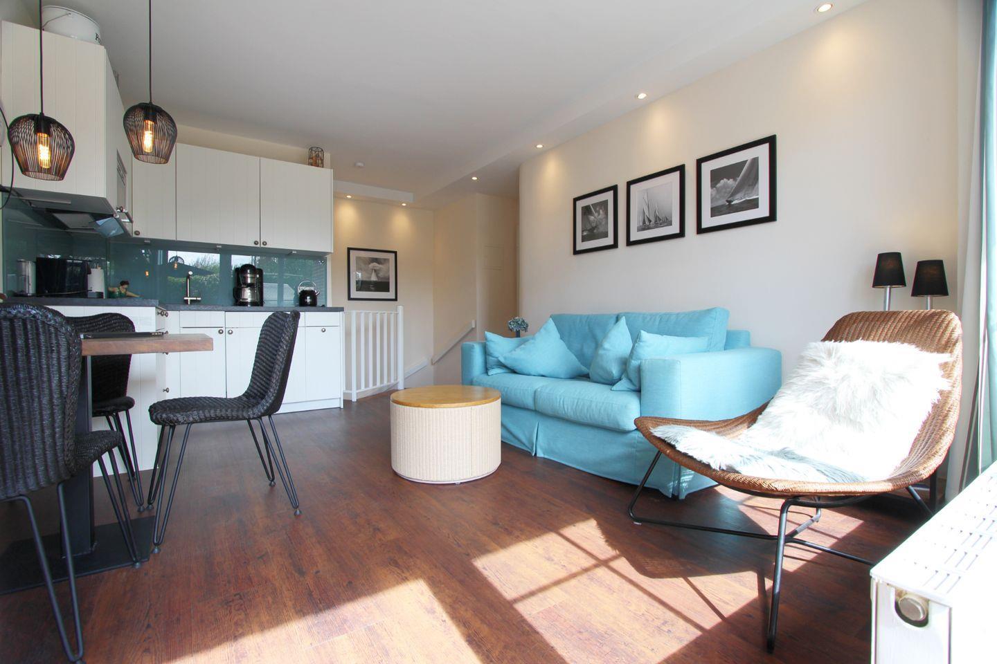 Im Wohnbereich im Erdgeschoss mit bequemen Sitzmöglichkeiten blicken Sie auf die gepflegte Grünfläche mit der eigenen Terrasse.