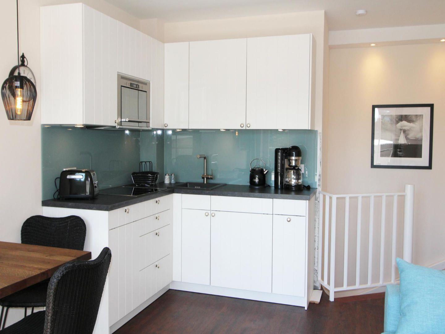 Der offene Koch-Essbereich bietet genügend Möglichkeiten, sich die Leibspeise oder das Lieblingsgetränk zuzubereiten.