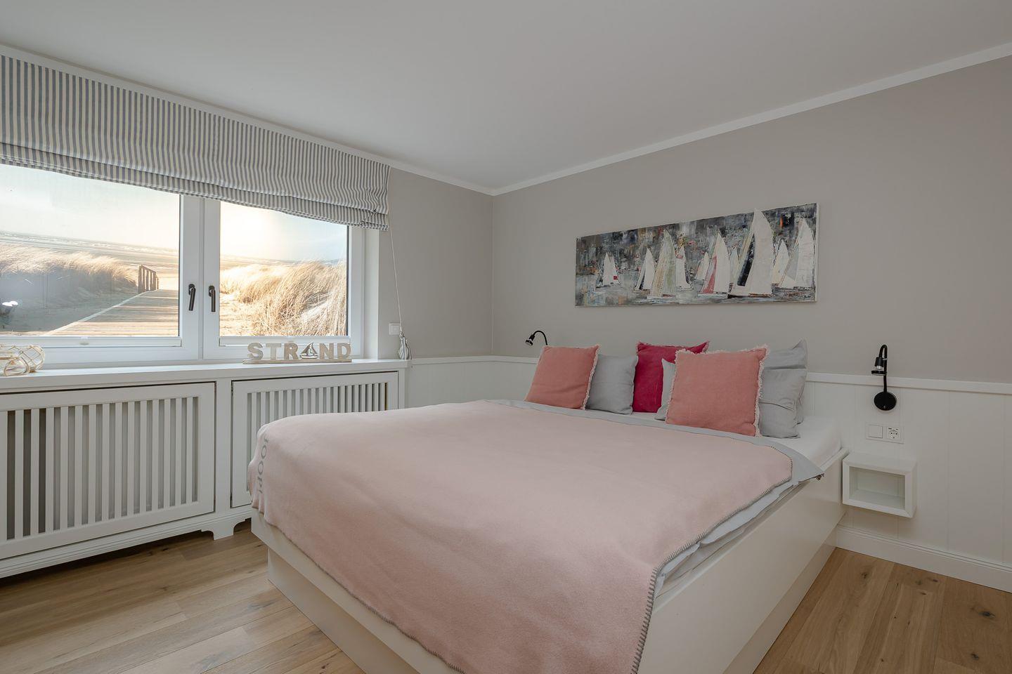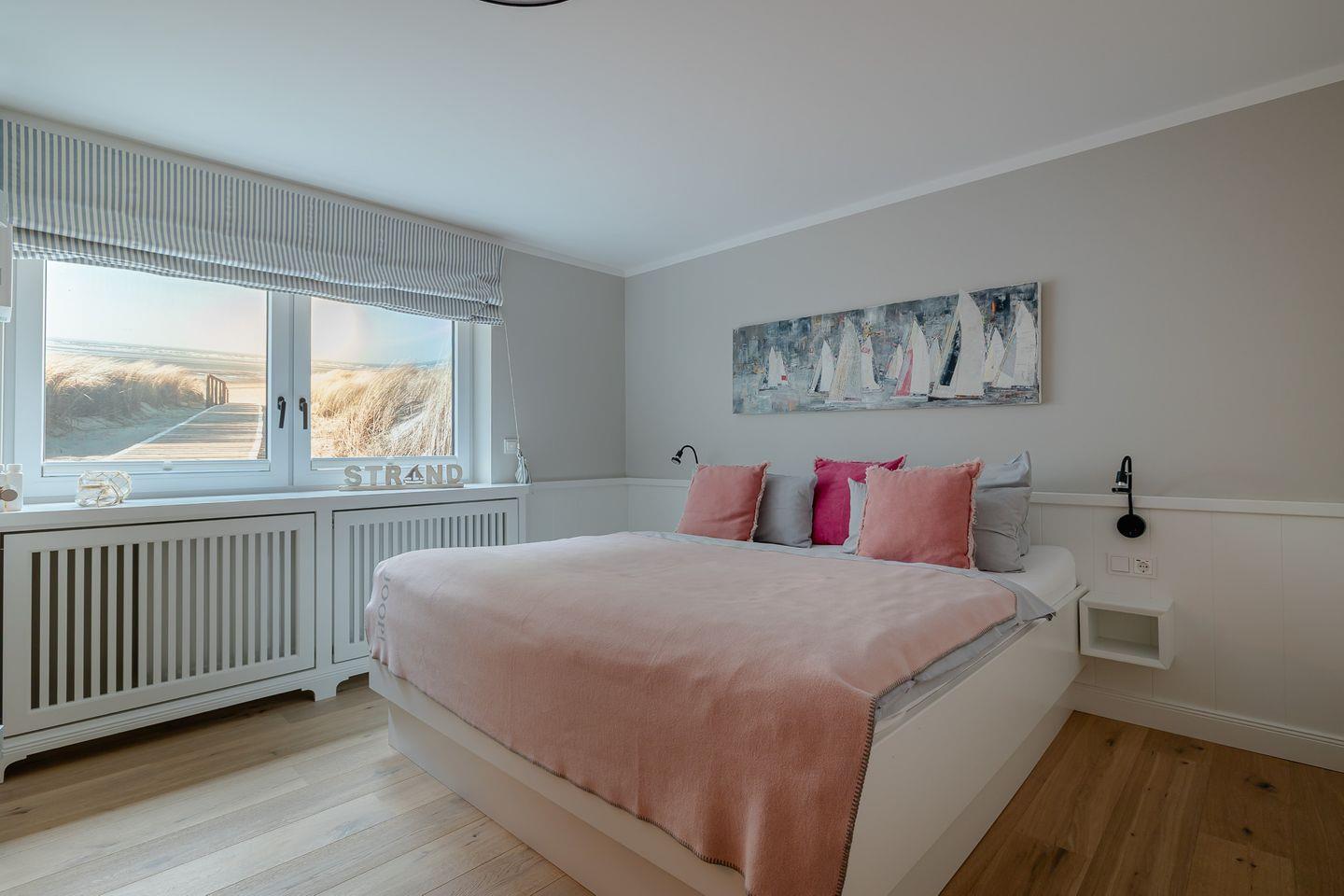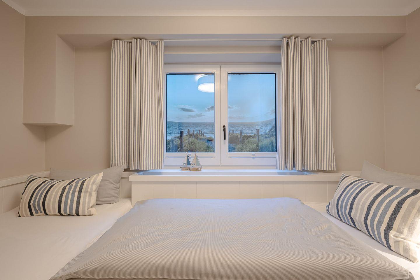Im großen Schlafzimmer befinden sich ein komfortables Doppelbett und ausreichend Stauraum für Ihre Garderobe. Das kleinere Schlafzimmer ist mit zwei Einzelbetten ausgestattet, sodass sich unser Domizil auch sehr gut für den Urlaub mit Kindern eignet. Alle Räume des Souterrains erhalten durch die großen Lichtschächte genügend Licht, wobei diese mit beeindruckenden maritimen Bildern gestaltet sind. So haben Sie schon beim Aufwachen das Gefühl, am Meer zu sein.