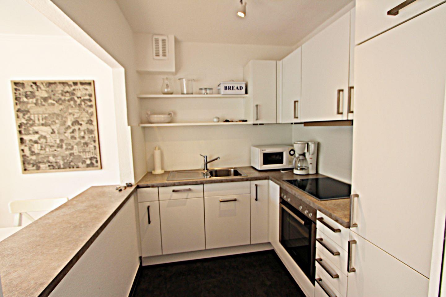 In der separaten, gut ausgestatteten Küche mit Durchreiche können Sie bequem Ihre Lieblingsspeise zubereiten und am Esstisch im Wohnzimmer mit Genuss verspeisen.