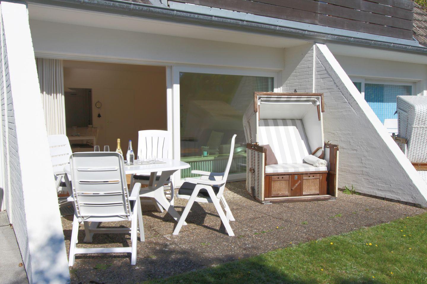 Individuell eingerichtetes Ferienappartement im Erd- und Untergeschoss eines strandnah gelegenen Feriendomizils. Genießen Sie die Sonne auf der Südterrasse in Ihrem Strandkorb!