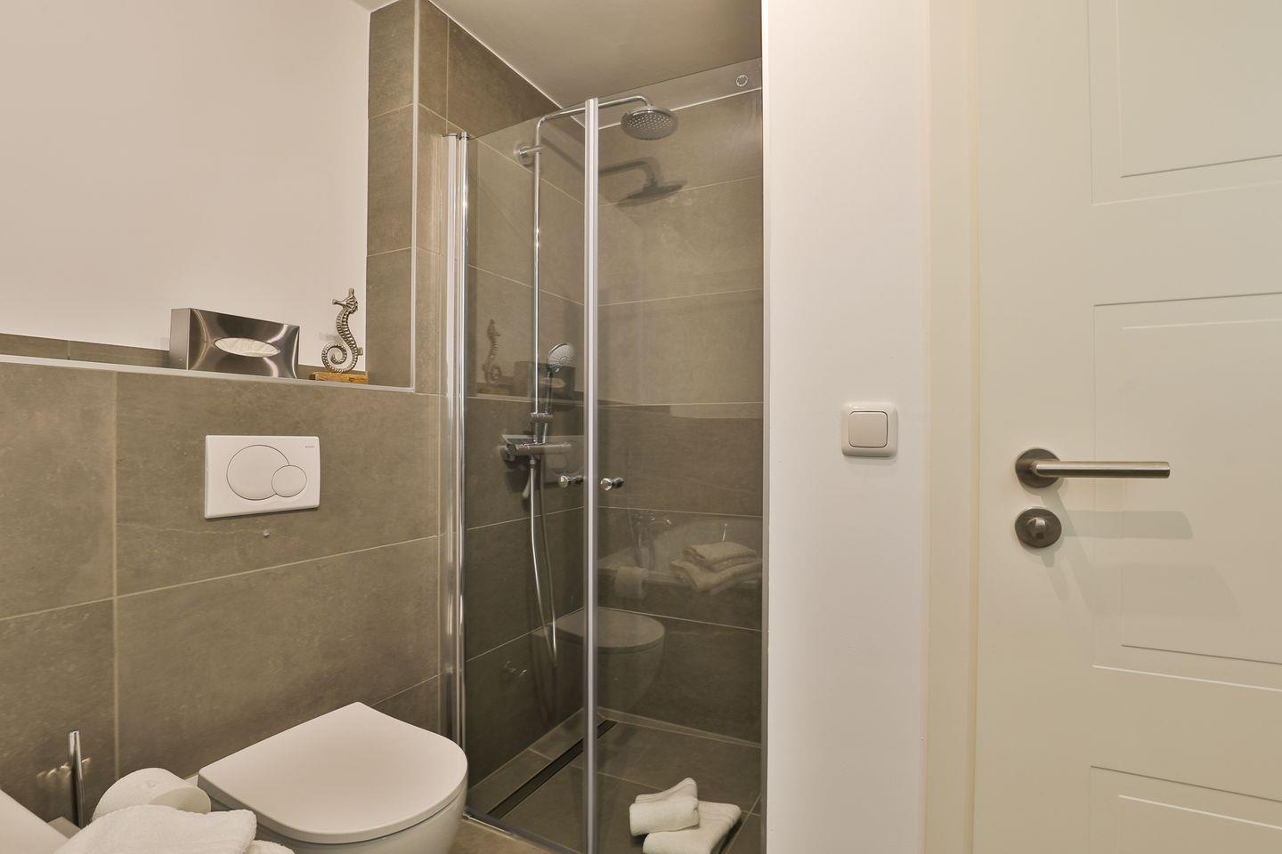 Badezimmer: Modern eingerichtetes Tageslicht-Duschbad mit WC.