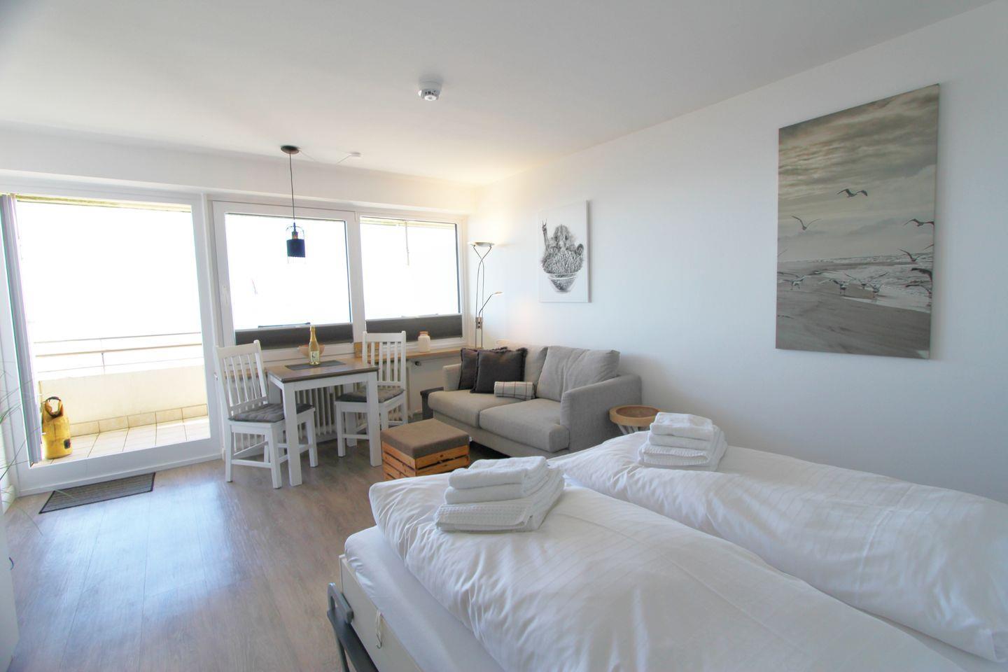 Komplett neu eingerichtete Ein-Raum-Ferienwohnung in einem Ferienkomplex in direkter Strandlage. Der traumhafte Meerblick macht diese Ferienwohnung ideal für einen unvergesslichen Sylt-Urlaub.