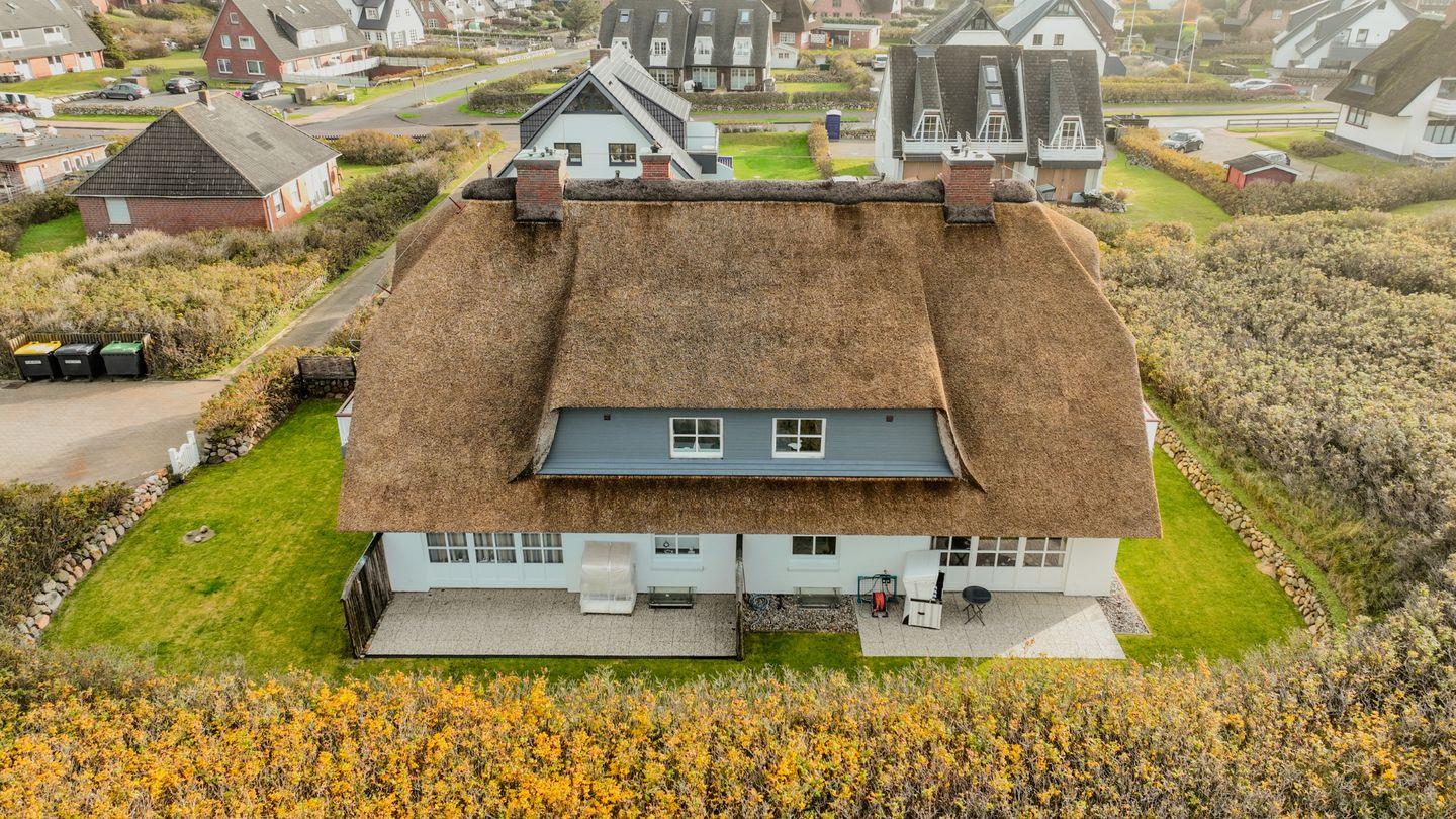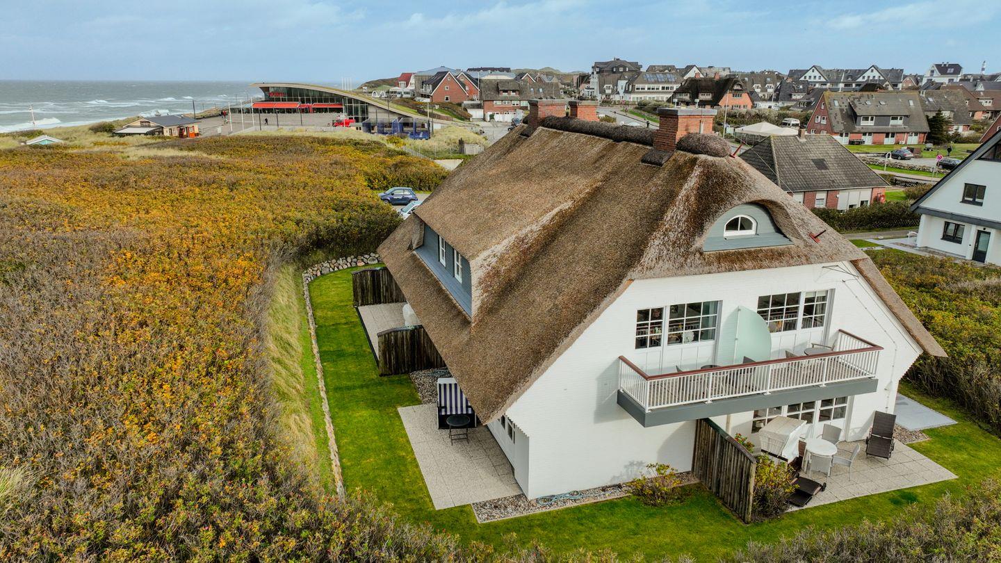 Auf der großen West-Terrasse mit Blick über die Dünen und andere Reetdach-Häuser können Sie sich ausgiebig erholen und Ihre Zeit auf Sylt wunderbar genießen.