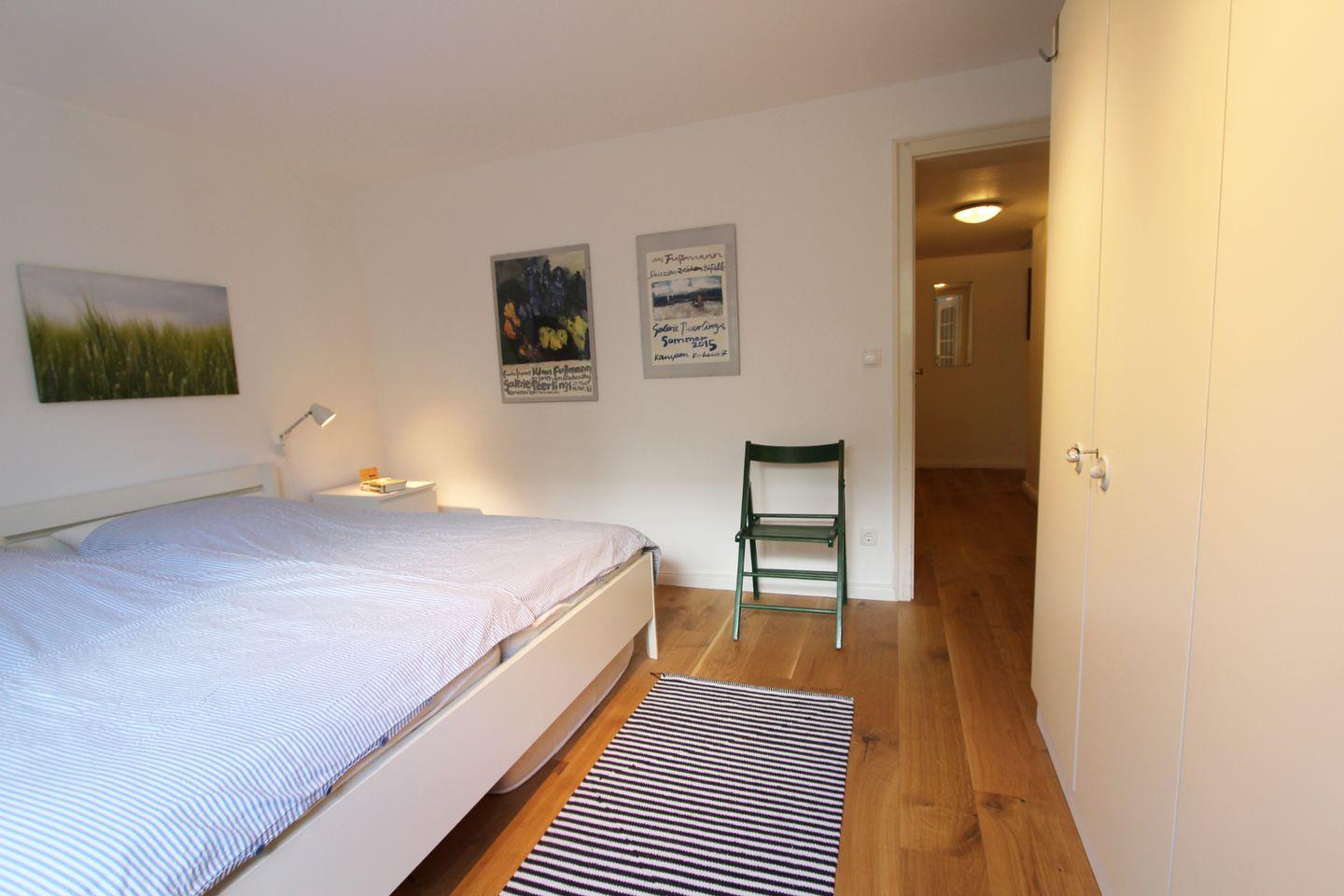 Im Erdgeschoss finden Sie ein Kinderschlafzimmer mit Etagenbett. Das untere Bett ist 140 cm breit, so dass hier auch ein Erwachsener oder aber 2 Kinder bequem schlafen können. Das Elternschlafzimmer mit Doppelbett befindet sich im Untergeschoss, welches abgeböscht ist und Tageslicht mit Blick auf den Rasen bietet.