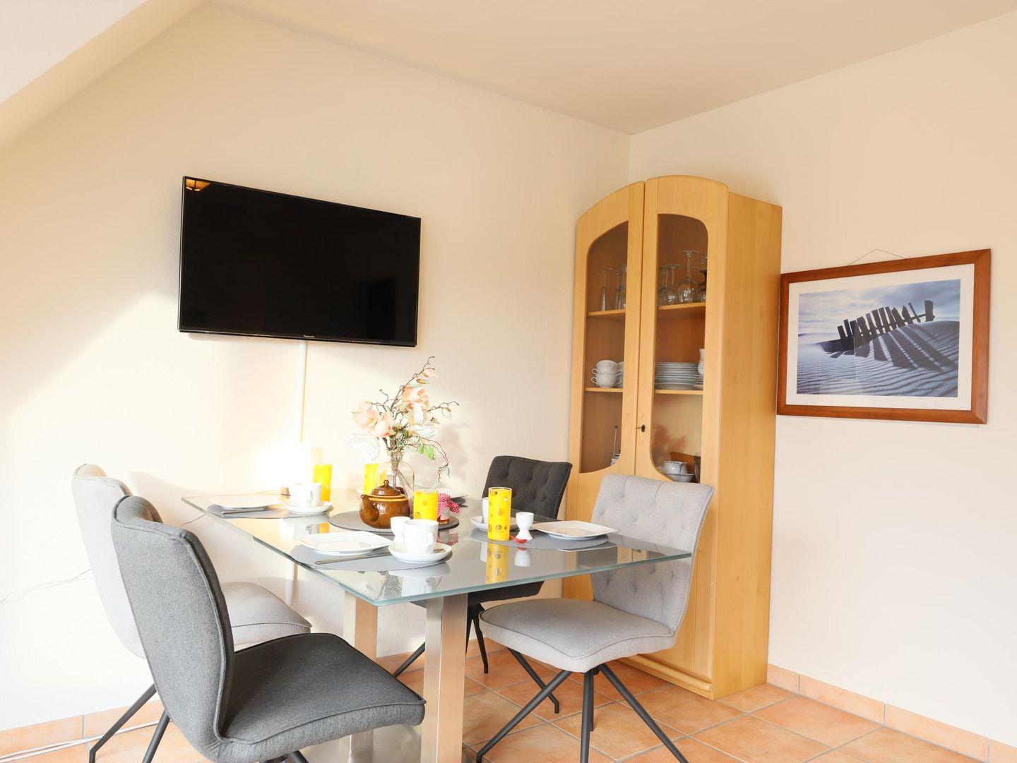 Dieses gemütliche 3-Zimmer-Appartement (ca. 61 m²) befindet sich in einer ruhigen Lage in Wenningstedt und bietet Platz für bis zu 4 Personen. Es liegt im Dachgeschoss und bietet einen herrlichen Ausblick vom Süd-Balkon. Das Wohnzimmer ist hell und einladend, mit einem Balkon, der nach Süden ausgerichtet ist. Das Schlafzimmer ist mit einem Doppelbett (180 x 200 cm) ausgestattet. Das großzügige Kinderzimmer bietet zwei Einzelbetten (90 x 200 cm) und eignet sich ideal für Familien. Die separate Küche ist funktional und gut ausgestattet, während das Duschbad mit WC für Komfort sorgt. Zur Ausstattung gehören Farb-TV, Radio und Telefon. Ein kostenloser PKW-Stellplatz steht zur Verfügung. Die Lage des Appartements bietet eine ideale Mischung aus Ruhe und Nähe zu den Annehmlichkeiten in Wenningstedt. Haustiere sind nicht gestattet.