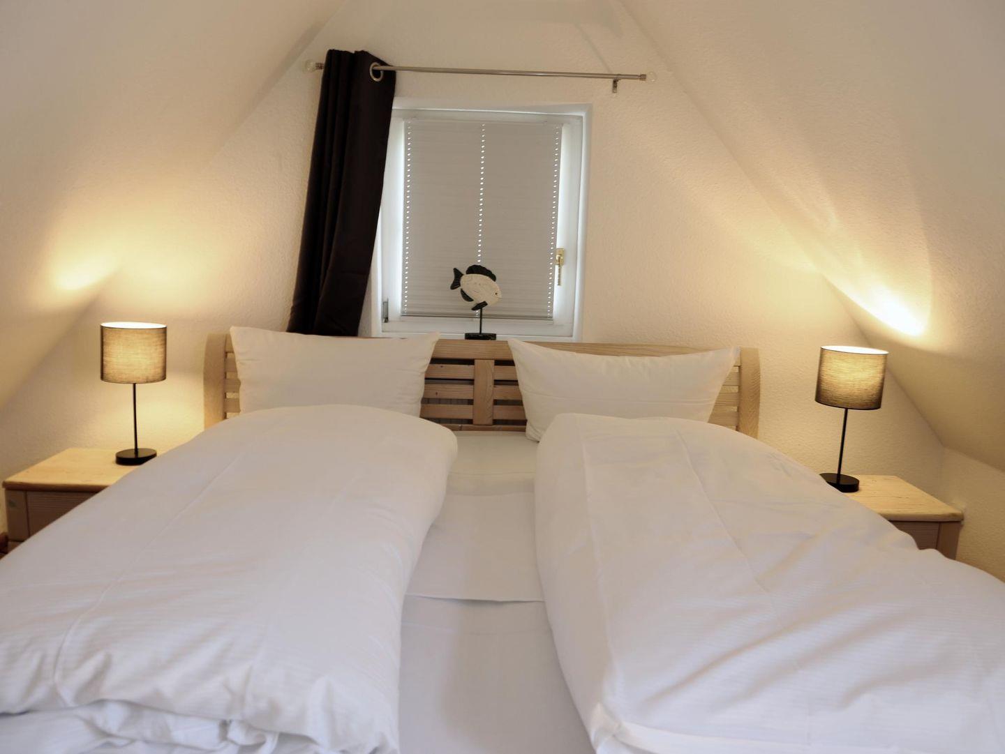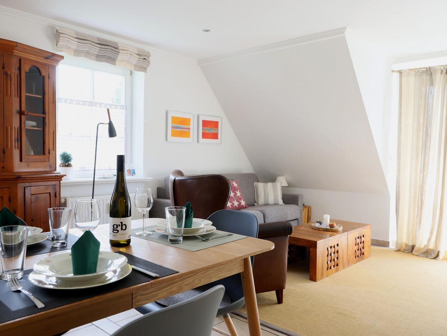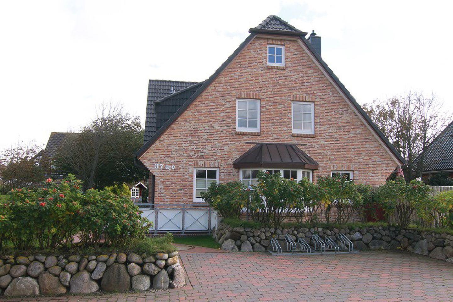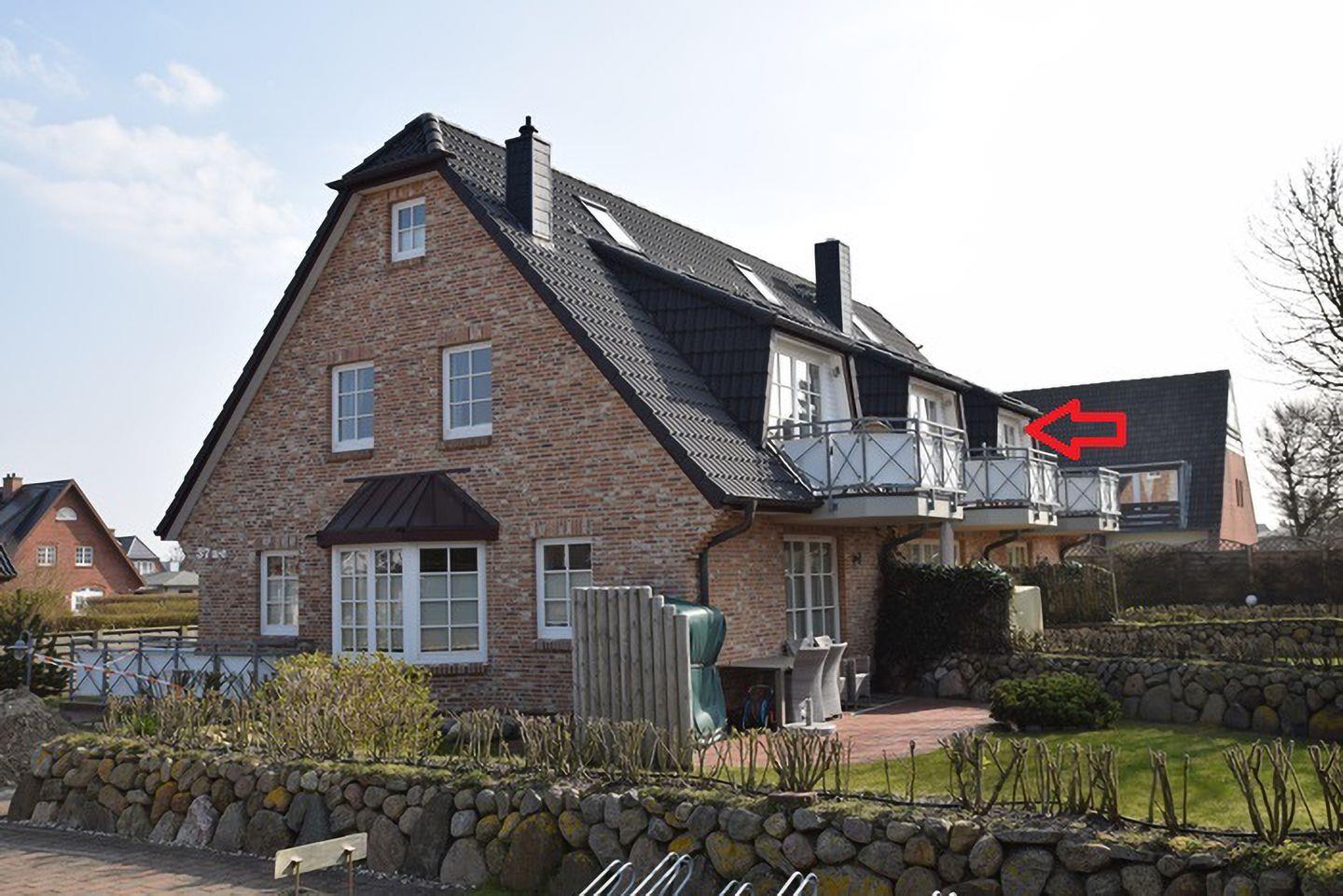 Diese moderne 2-Zimmer-Wohnung (ca. 59 m²) im Friesenstil befindet sich in einer ruhigen Lage in Wenningstedt und bietet Platz für bis zu 4 Personen. Auf zwei Etagen verteilt, umfasst das Appartement ein Wohnzimmer mit Schlafcouch (160 x 200 cm) und Kabel-TV sowie eine offene Küche mit Geschirrspüler, Backofen und Mikrowelle. Das Schlafzimmer ist mit einem Doppelbett (180 x 200 cm) ausgestattet. Das Badezimmer bietet eine Dusche, WC und eine Wasch-/Trocknerkombination. Der Südbalkon mit Gartentisch und Stühlen lädt zum Entspannen ein. Der Strandübergang und das Zentrum von Wenningstedt sind in wenigen Gehminuten erreichbar. Ein kostenfreier Stellplatz befindet sich direkt am Haus.