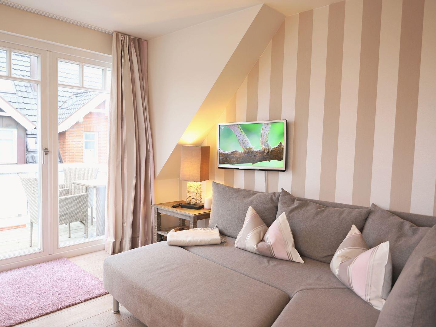 Erleben Sie Ihren Urlaub umgeben von edlem Design, viel Liebe zum Detail und exklusivem Ambiente in der stilvollen 2-Zimmer-Wohnung „Muschelkoje“. Die Wohnung liegt nur wenige Meter vom Strand und Dorfteich entfernt, nah zu Einkaufsmöglichkeiten und Restaurants. Mit 66 m² bietet sie Platz für zwei Personen und verfügt über einen möblierten Südbalkon, ein Schlafzimmer mit Doppelbett (160 x 200 cm), ein Wohn-/Esszimmer sowie eine voll ausgestattete Küche. Münz-Waschküche und Parkplatz sind am Haus vorhanden, Haustiere sind jedoch nicht gestattet.