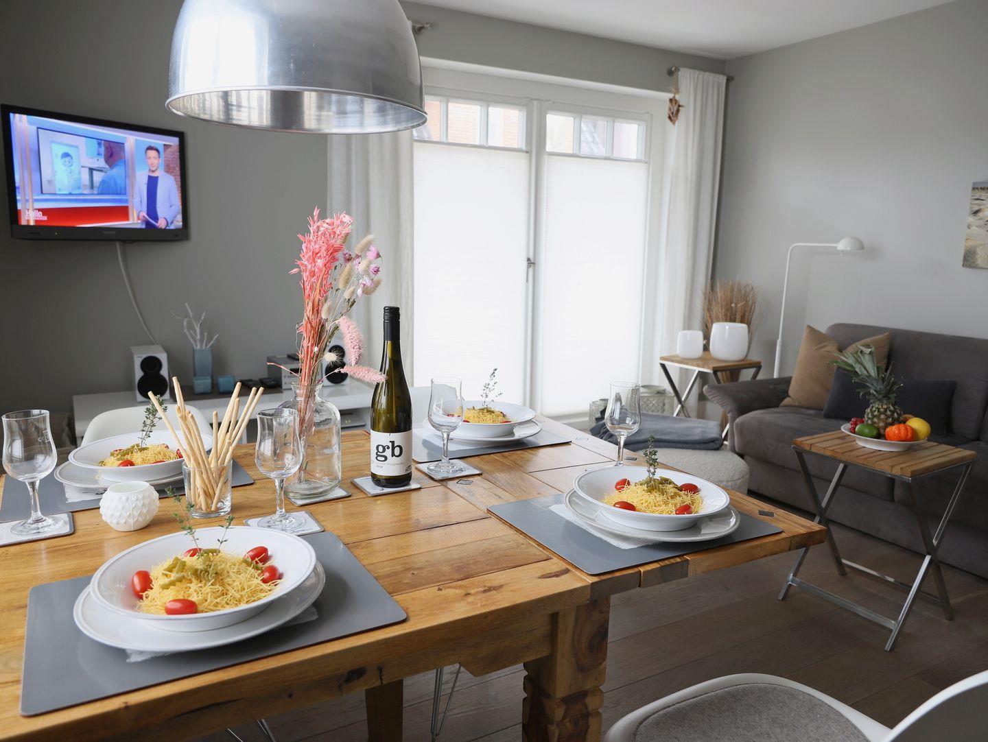 Diese stilvoll eingerichtete 2-Zimmer-Wohnung in Wenningstedt auf Sylt bietet auf ca. 50 m² Platz für bis zu vier Personen. Die Ferienwohnung besticht durch edles Design und ein exklusives Ambiente. Das helle Wohnzimmer verfügt über ein komfortables Schlafsofa (160x200 cm) und bietet Zugang zu einem möblierten Süd-Balkon. Das Schlafzimmer ist mit einem Doppelbett (180x200 cm) ausgestattet und bietet vollständige Verdunkelungsmöglichkeiten für einen erholsamen Schlaf. Das moderne Badezimmer rundet den Komfort ab. Im Keller stehen Münz-Waschmaschine und Trockner zur Verfügung. Ein kostenfreier Parkplatz befindet sich direkt vor dem Haus. Haustiere sind nicht gestattet.
