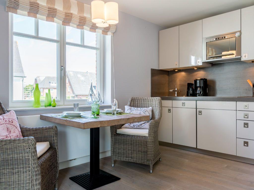 Das „Strandnest“ in Wenningstedt bietet auf ca. 50 m² eine einladende Ferienwohnung für bis zu zwei Personen. Im Wohnbereich stehen ein Esstisch und eine moderne Küchenzeile zur Verfügung. Das separate Schlafzimmer ist mit einem komfortablen Doppelbett (180 x 200 cm) ausgestattet. Im Badezimmer erwartet Sie eine Dusche, und der möblierte Südbalkon bietet sonnige Entspannungsmöglichkeiten. Münz-Waschmaschine und Trockner im Keller sowie ein Parkplatz direkt am Haus sorgen für zusätzlichen Komfort. Haustiere sind nicht gestattet.