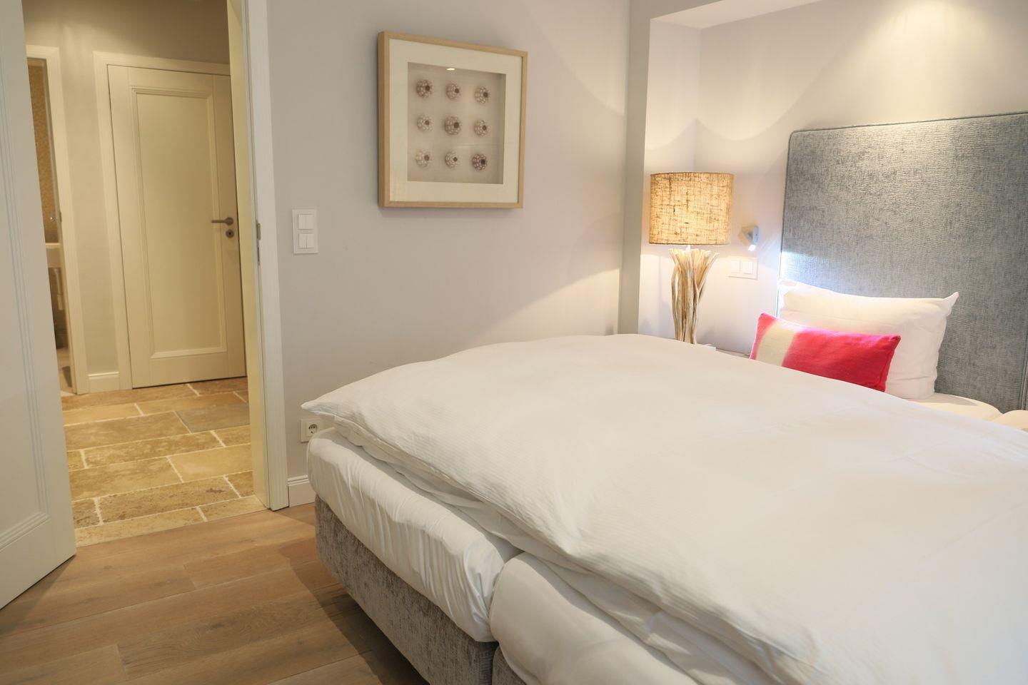 Willkommen in dieser exklusiven Doppelhaushälfte in Wenningstedt, Sylt. Nur wenige Minuten vom Dorfteich, Strand und Restaurants entfernt, bietet dieses stilvolle Zuhause alles, was Sie für einen erholsamen Urlaub benötigen. Auf ca. Auf ca. 124 m² verteilt sich die Haushälfte über mehrere Etagen und begeistert mit modernen Einbauten und einer hellen, einladenden Atmosphäre. Das großzügige Wohn- und Esszimmer bietet einen herrlichen Blick auf den Südgarten. Das Haus bietet Platz für bis zu 6 Personen in 3 Schlafzimmern: Ein Schlafzimmer mit Doppelbett (140 x 200 cm), ein weiteres mit Doppelbett (180 x 200 cm) und ein großes Schlafzimmer mit Doppelbett (200 x 220 cm). Ein viertes Schlafzimmer mit Einzelbett (90 x 200 cm) ist ebenfalls vorhanden. Die Bäder sind im modernen Naturstein-Look gehalten: Ein Bad mit Dusche/WC, ein weiteres Bad mit Badewanne, Dusche und WC sowie ein Gäste-WC. Eine Sauna im zweiten zusätzlichen Bad sorgt für Komfort. Die Süd-Terrasse mit Strandkorb, Gartenmöbeln und Garten lädt zum Entspannen ein. Eine Waschmaschine und ein Trockner im Keller sowie ein kostenfreier Stellplatz runden das Angebot ab. Haustiere sind nicht gestattet.