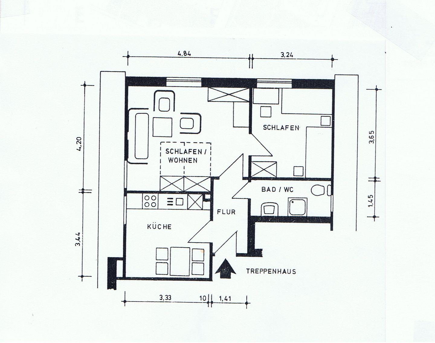 Herzlich Willkommen in Ihrer gemütlichen Zwei-Zimmer-Wohnung im 1. Stock in
