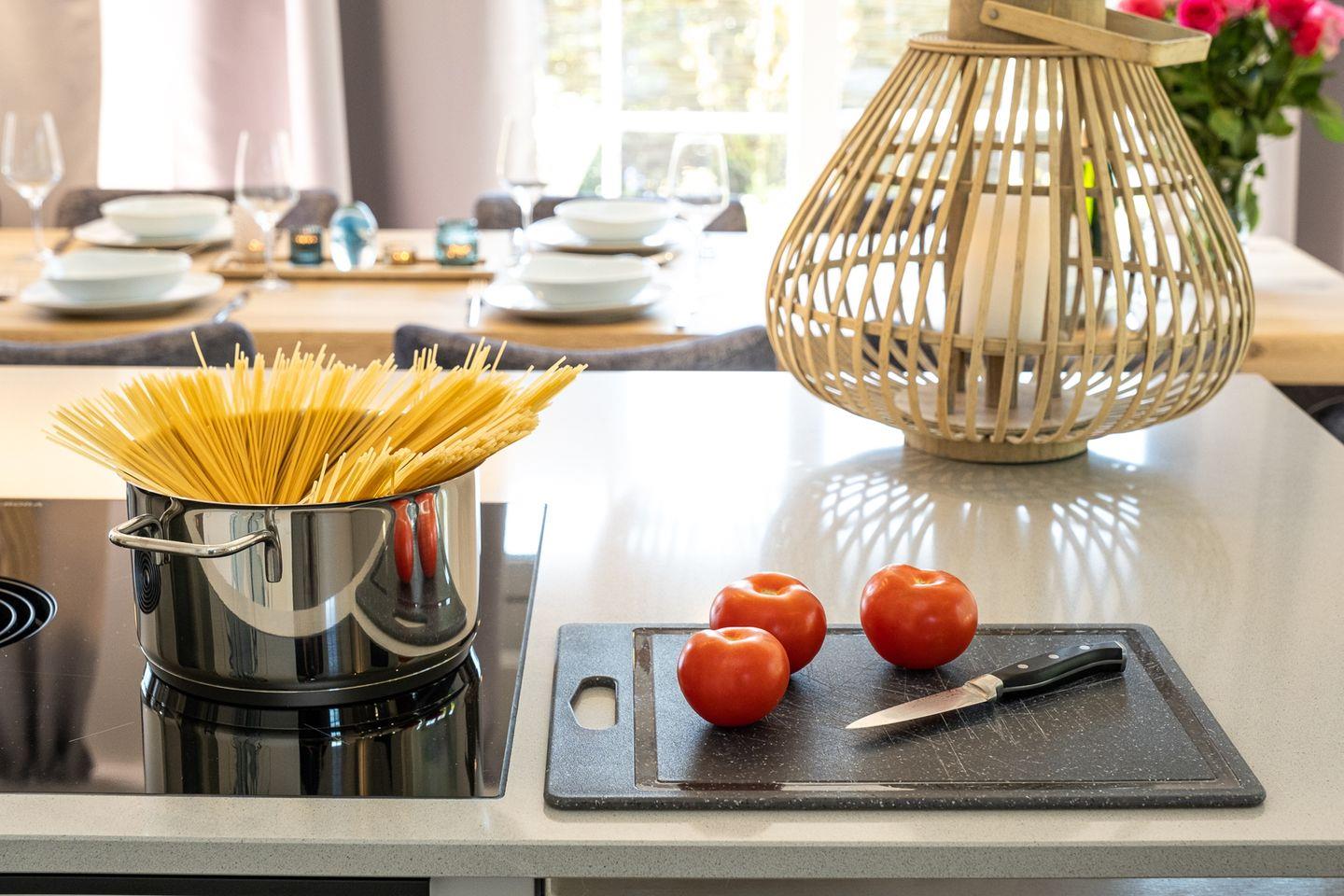 Treten Sie ein und lassen Sie sich verzaubern. Im EG des Ferienhauses befindet sich der großzügige, lichtdurchflutete Wohnbereich mit kuscheliger, moderner Sitzecke und einem großen Smart-TV. Der schöne, großzügige Essbereich lädt zum gemütlichen Beisammensein ein. Die offene gehobene Küche mit einer tollen Kochinsel ist ausgestattet mit einer Mikrowelle, einem Backofen, Geschirrspüler, Filter-Kaffeemaschine, Nespresso-Kapselmaschine, Toaster und Wasserkocher. Vom Wohn-und Essbereich aus gelangen Sie in den traumhaften und aufwendig angelegten Garten mit Terrasse und hochwertigen Gartenmöbeln. Auf der Süd-Terrasse genießen Sie bei gutem Wetter ganztägig die Sonne. Damit sind entspannte Stunden garantiert. Im Eingangsbereich des Hauses befindet sich zudem ein Garderobenraum.