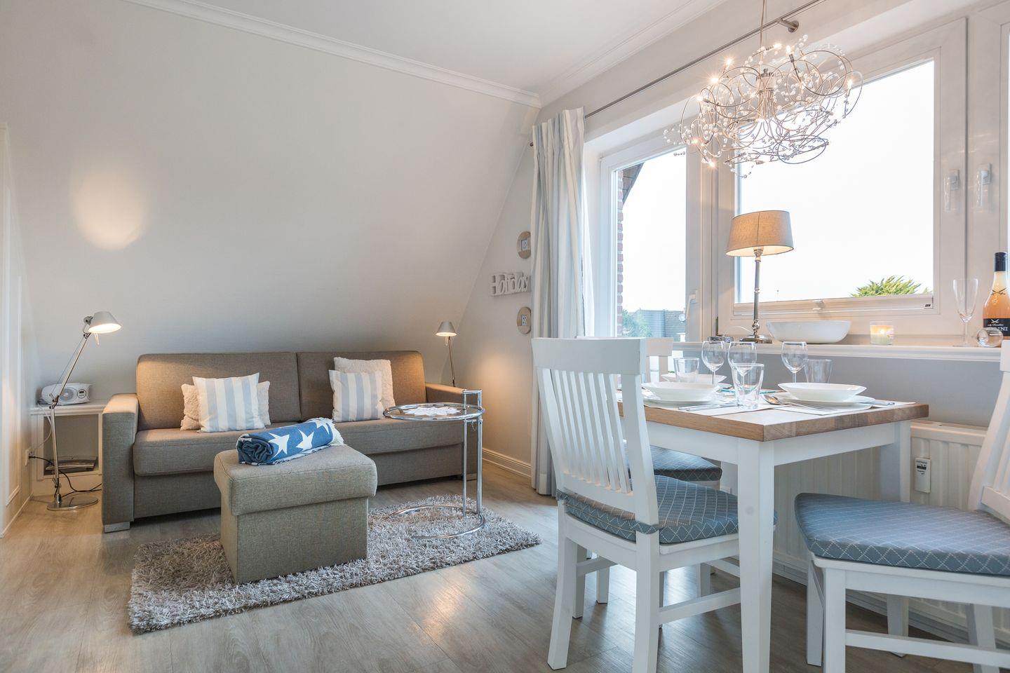 Dieses lichtdurchflutete Appartement liegt unweit vom Strandübergang Wenningstedt. Die gemütliche 2-Zimmer-Wohnung bietet Ihnen einen modernen Wohnraum mit offener Küchenzeile und Dusch/Bad WC. Waschmaschine + Trockner befinden sich im Hauskeller. Die Nichtraucherwohnung bietet einen herrlichen Weitblick vom großen Balkon, ausgestattet mit Strandkorb + Gartenmöbeln. Allergiker geeignet. PKW-Stellplatz direkt vorm Haus. WLAN vorhanden (Ohne Gewähr)