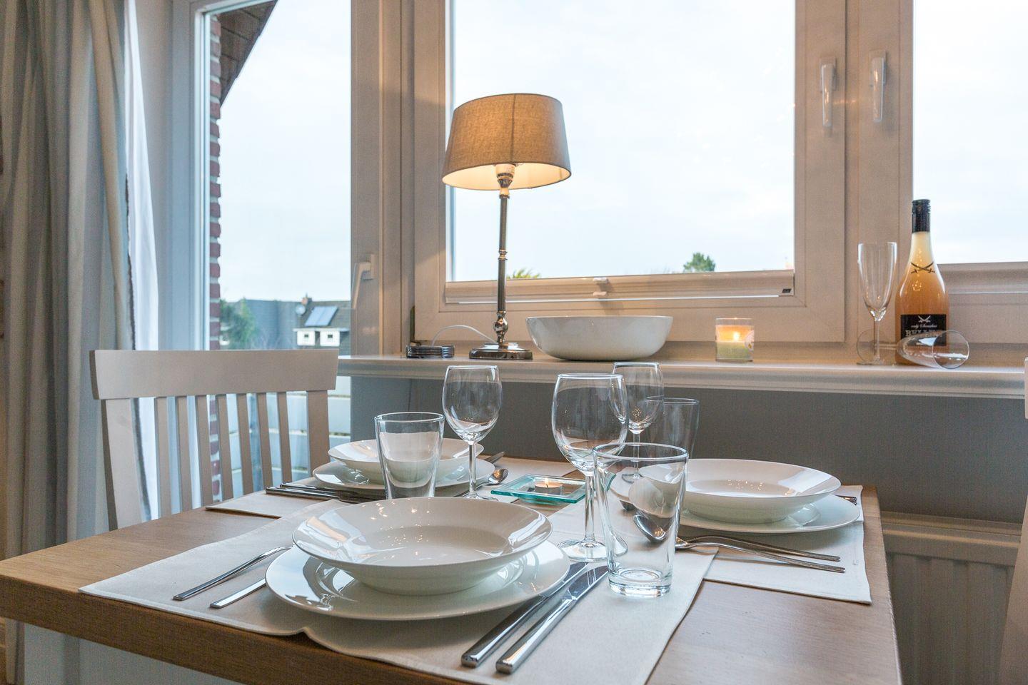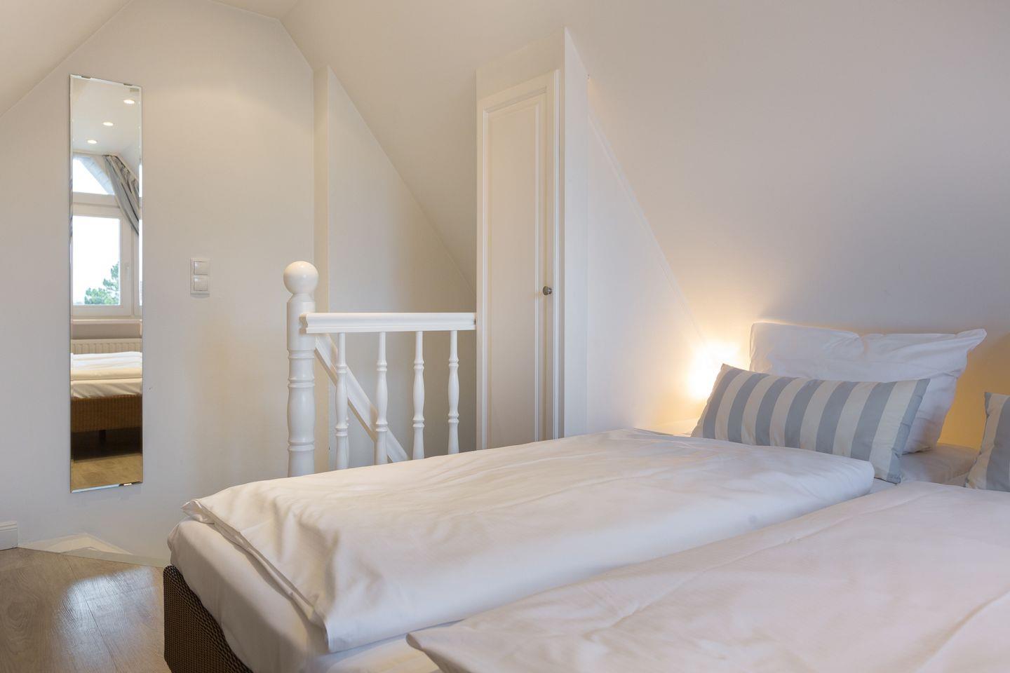 Dieses ruhige, lichtdurchflutete Obergeschoss & Dachgeschoss Appartement liegt unweit vom Strandübergang Gosch in Wenningstedt. Die gemütliche, grundrenovierte 2-Zimmer-Wohnung bietet Ihnen einen modernen Wohnraum mit offener Küchenzeile mit Geschirrspüler und Mikrowelle, sowie kleinem Flur und Dusch/Bad WC mit Fön. Hochwertiges Flat-TV, Stereo-Anlage und W-Lan sind selbstverständlich. Waschmaschine + Trockner befinden sich im Hauskeller. Die Nichtraucherwohnung bietet einen herrlichen Weitblick vom großen Balkon, ausgestattet mit Strandkorb + Gartenmöbeln. Allergiker geeignet. PKW-Stellplatz direkt vorm Haus. Bei zusätzlicher Anmietung der darunterliegenden Wohnung kann die Essecke in der Wohnung 3 auf 6 Plätze erweitert werden. Die Wohnung 3 und 6 können eine eigene Hauseinheit bilden. WLAN vorhanden (Ohne Gewähr)