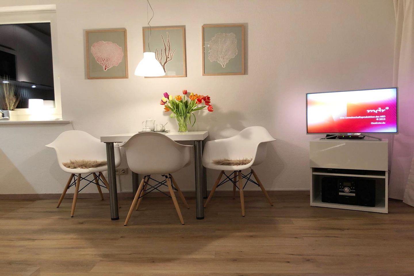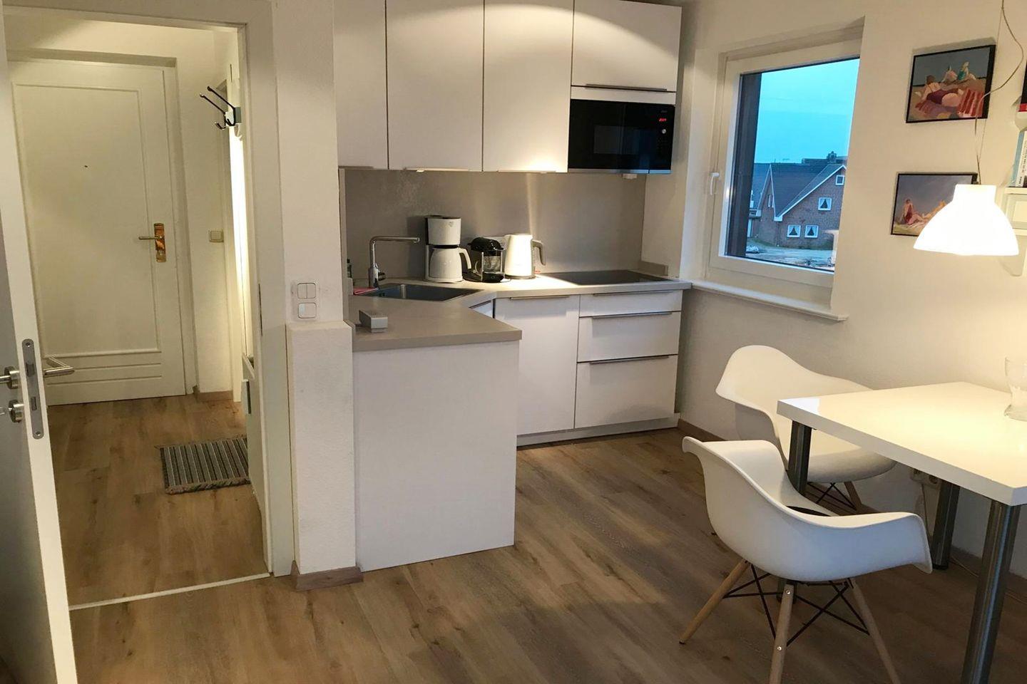 Schönes, helles 2-Zimmer-Apartment in exklusiver Strandlage im "Schloss am Meer" auf zwei Ebenen mit Süd-Westbalkon mit Meerblick. Küchenzeile mit Spülmaschine, Cerankochfeld, Mikrowelle, Toaster, Kühlschrank. Neben der normalen Kaffeemaschine steht für Sie eine Nespresso-Kaffeemaschine zur Verfügung. Bad mit Dusche/WC, Wohnzimmer mit gemütlicher Essecke, Wohlfühlsofa und Flachbildschirm. Schlafzimmer mit Doppelbett (180 x 200 cm) und großem Kleiderschrank. WLAN vorhanden (ohne Gewähr)