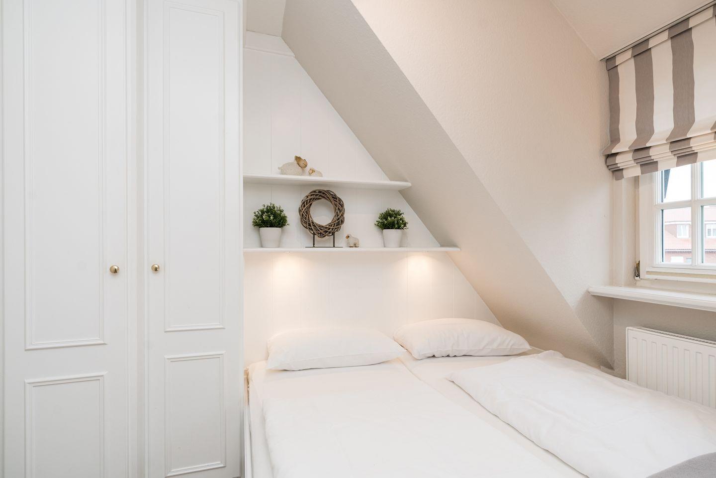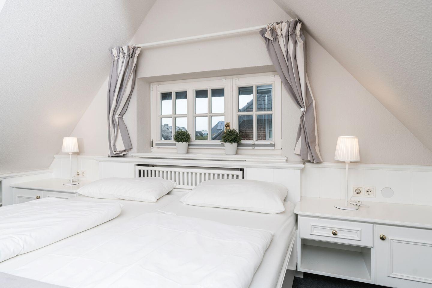 Im DG liegt das 2. Schlafzimmer mit Doppelbett und ebenfalls hochwertigen und großzügig bemessenen Schrankeinbauten. WLAN vorhanden (Ohne Gewähr)
