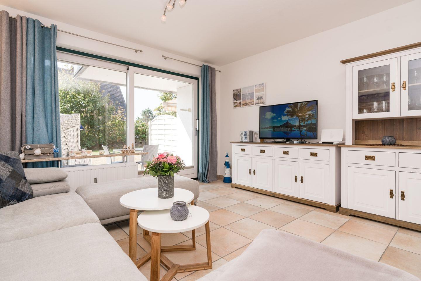 Diese schöne, freundliche Wohnung verteilt sich über 2 Etagen und lädt zum entspannten Urlauben ein. Im großzügigen und freundlich gestalteten Wohnraum werden Sie sich wohlfühlen. Die offene Küche verfügt über einen Geschirrspüler, Backofen und ein Ceran-Kochfeld. Behaglich relaxen können Sie in dem gemütlichen Schlafzimmer. Im EG befindet sich ein Gäste WC, im Untergeschoss erwartet Sie Ihr Badezimmer mit Dusche/WC sowie der Schlafraum mit einem Doppelbett. Die nach Süden ausgerichtete Terrasse mit anschließendem großen Garten lädt mit Gartenmöbeln zum Verweilen ein. WLAN vorhanden (ohne Gewähr)