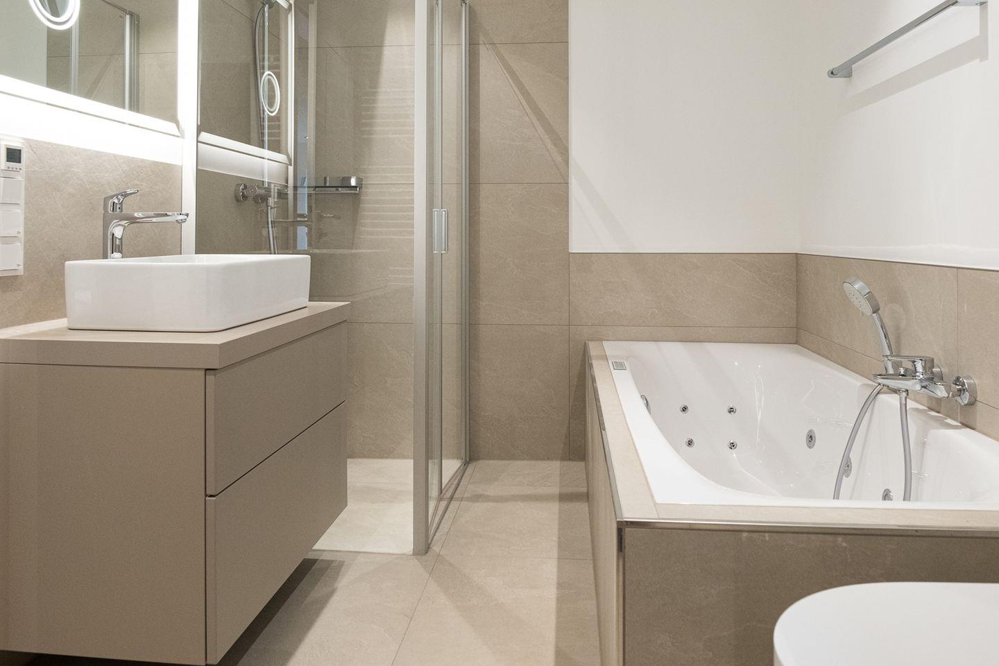 Im Untergeschoss des Ferienhauses befindet sich ein Schlafraum mit hochwertigen Boxspringbett (180x200), ein Badezimmer mit Whirlwanne, Dusche und WC. Angrenzend an das Badezimmer ist die 2-Personen Sauna (gebührenfrei).
