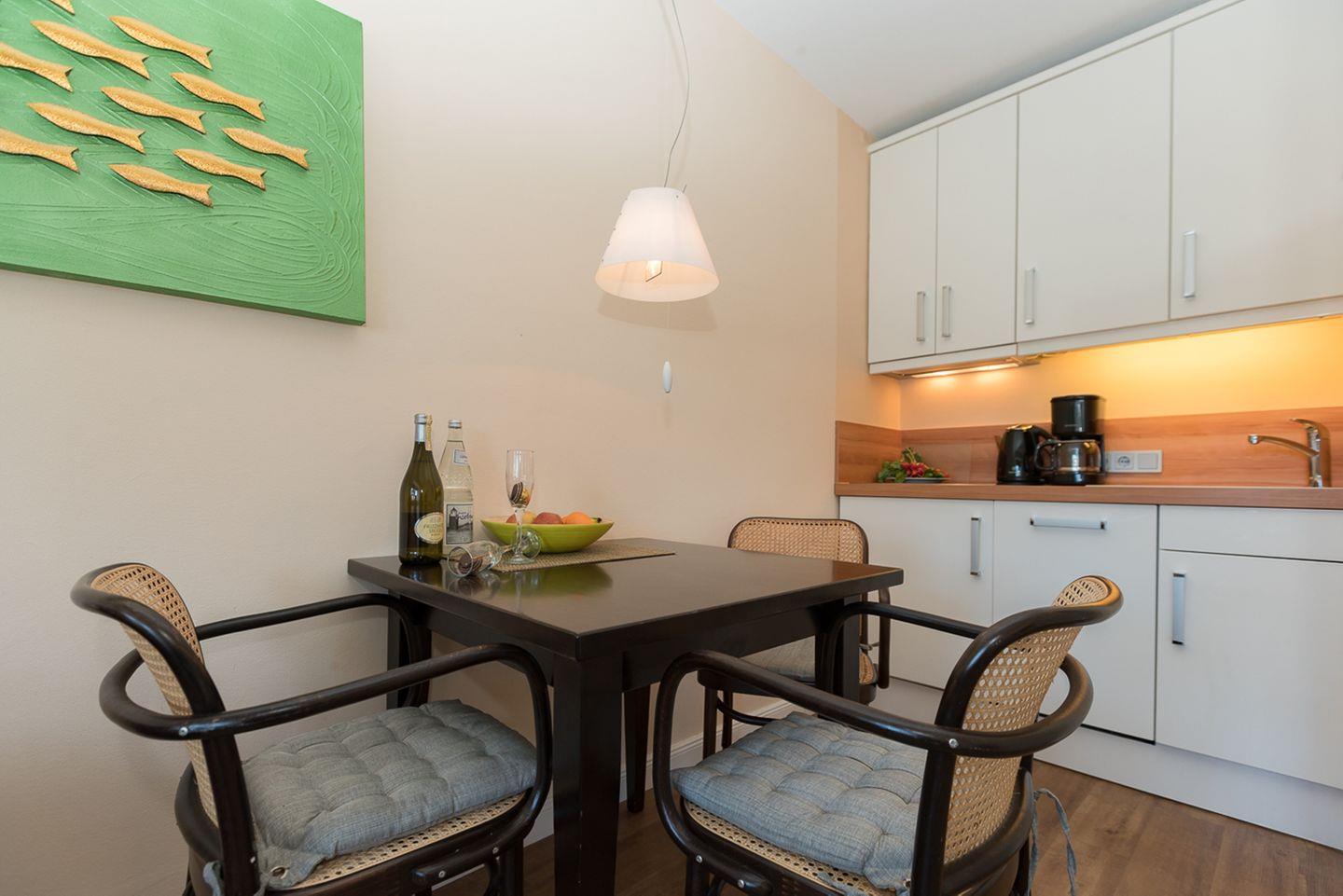 Im Zentrum von Wenningstedt-Braderup, nur wenige Minuten vom Strand entfernt, liegt dieses Kleinod. Mittendrin statt nur dabei. In dieser Wohnung werden Sie erholsame Tage unweit des Wenningstedter "Dorflebens" verbringen. Die 2 Zimmer Wohnung erstreckt sich über 2 Etagen, 1. OG & DG. Im 1. Obergeschoss ist die offene Küchenzeile sehr gut in den Wohn-/Essbereich integriert. Vom Wohnbereich gelangen Sie auf den nach Westen liegenden Balkon. Das moderne Duschbad ist ebenso auf dieser Ebene untergebracht. WLAN vorhanden (Ohne Gewähr)