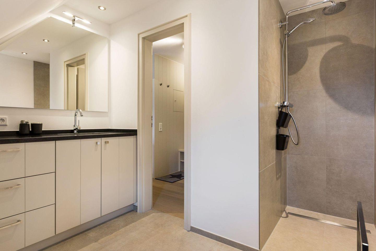 Das Badezimmer ist modern ausgestattet mit Dusche, WC, Handtuchwärmer, Föhn und Tageslicht. Im gemeinschaftlichen Wellnessbereich des Hauses stehen eine Sauna und ein Ruheraum zur Verfügung.
