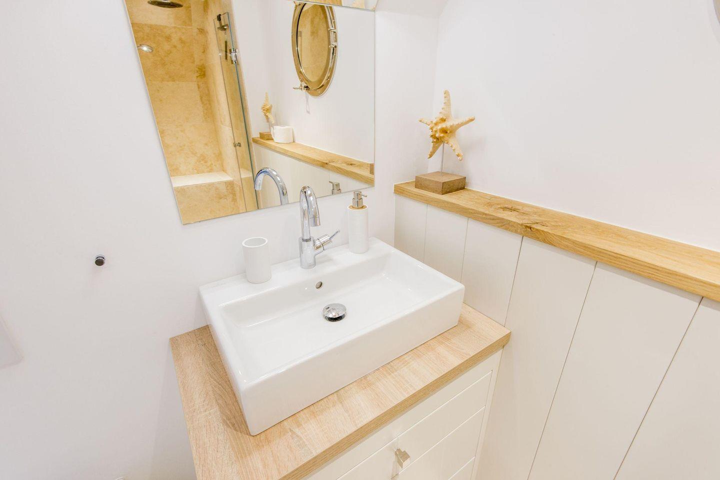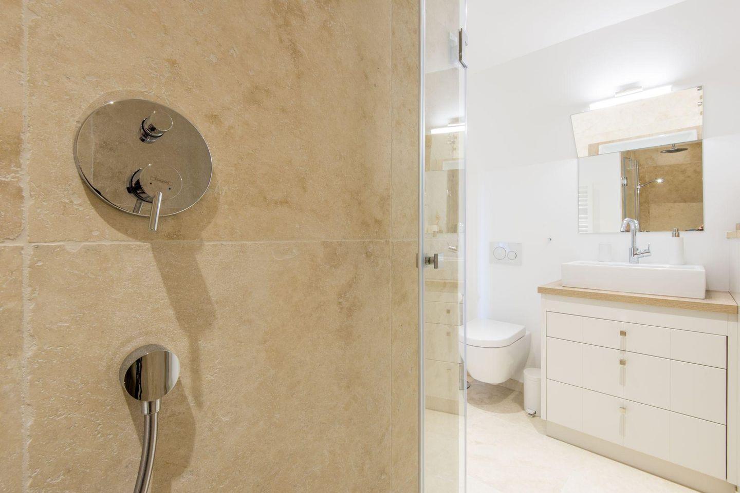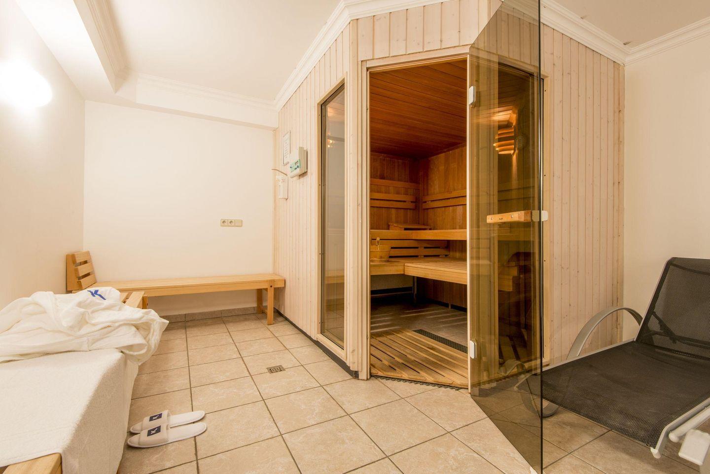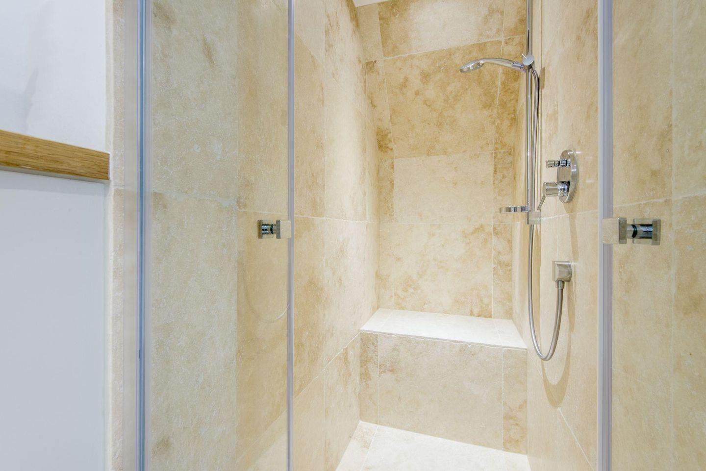 Das Badezimmer ist modern ausgestattet mit Dusche, WC, Handtuchwärmer und Föhn und bietet den idealen Start in den Tag. Entspannung pur finden Sie im gemeinschaftlichen Wellnessbereich mit Sauna und Ruheraum im Haus.