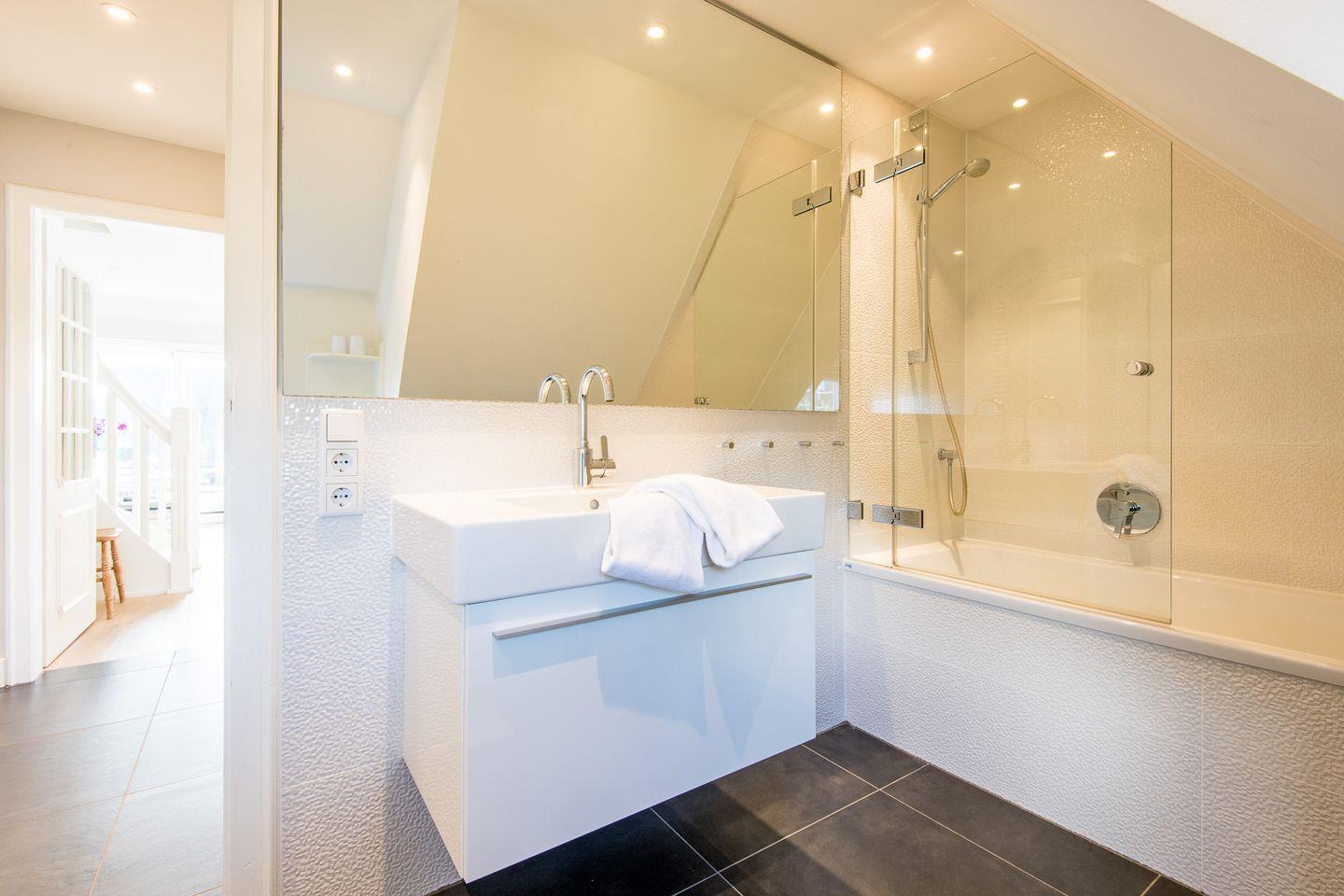 Das Badezimmer bietet einen modernen Komfort mit einer Kombination aus Badewanne und Dusche, WC, Handtuchwärmer und einem Föhn. Die hochwertige Ausstattung und das ansprechende Design machen diesen Raum zu einem kleinen Wellnessbereich für den täglichen Frischekick.