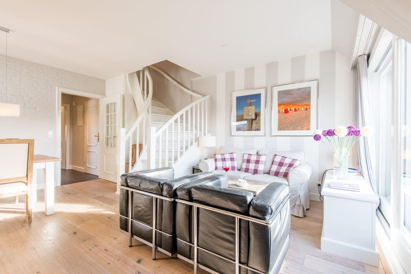 Diese lichtdurchflutete 3-Zimmer-Ferienwohnung erstreckt sich über zwei Ebenen und bietet auf ca. 58 m² genügend Platz für bis zu 4 Personen. In Wenningstedt gelegen, nur wenige Gehminuten vom Strand entfernt, finden Sie hier den idealen Rückzugsort für einen entspannten Urlaub auf Sylt. Die hochwertige Einrichtung, die hellen Eichenparkettböden und die durchdachten Tischlereinbauten schaffen eine besonders wohnliche Atmosphäre.