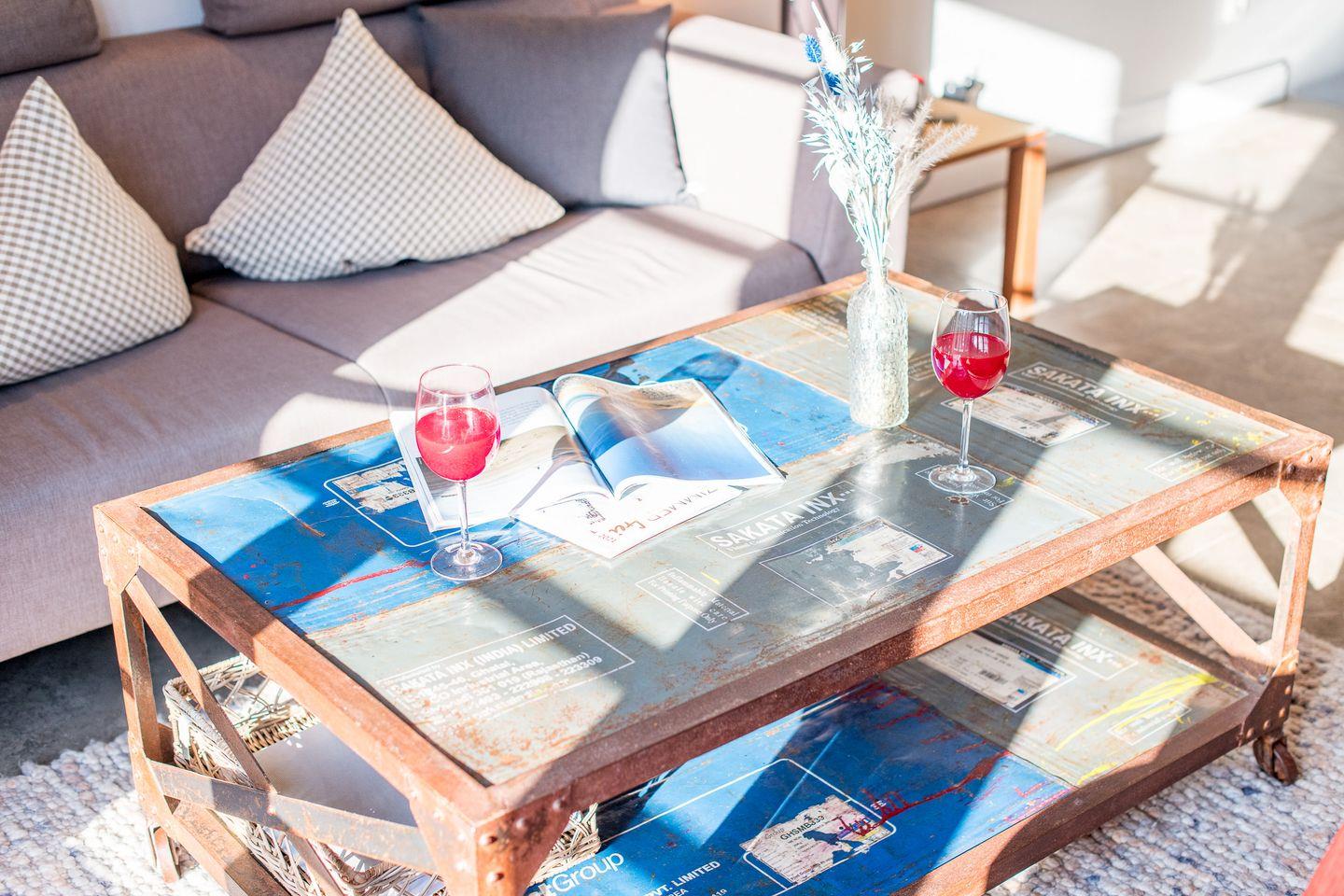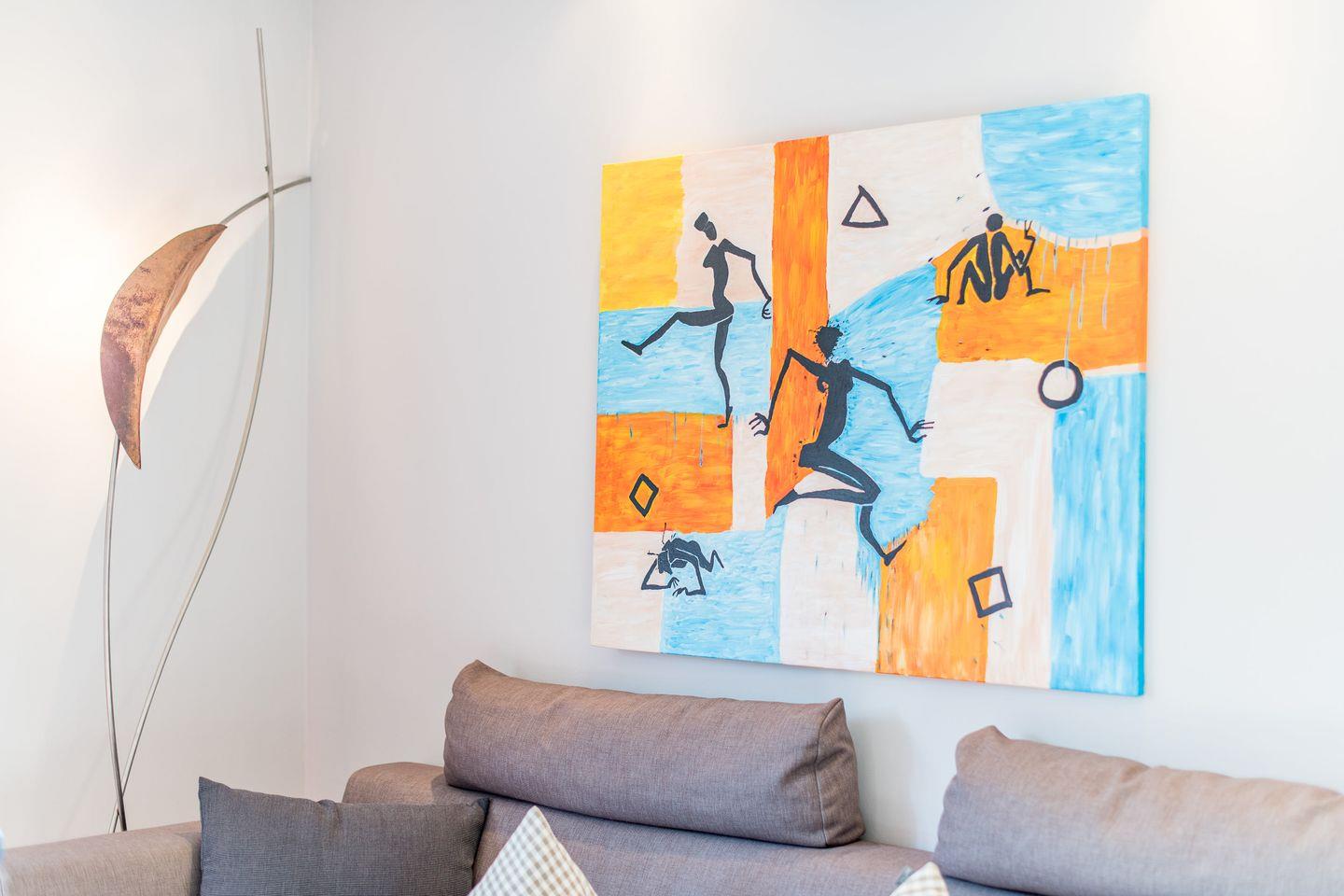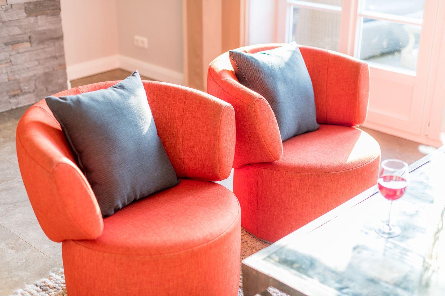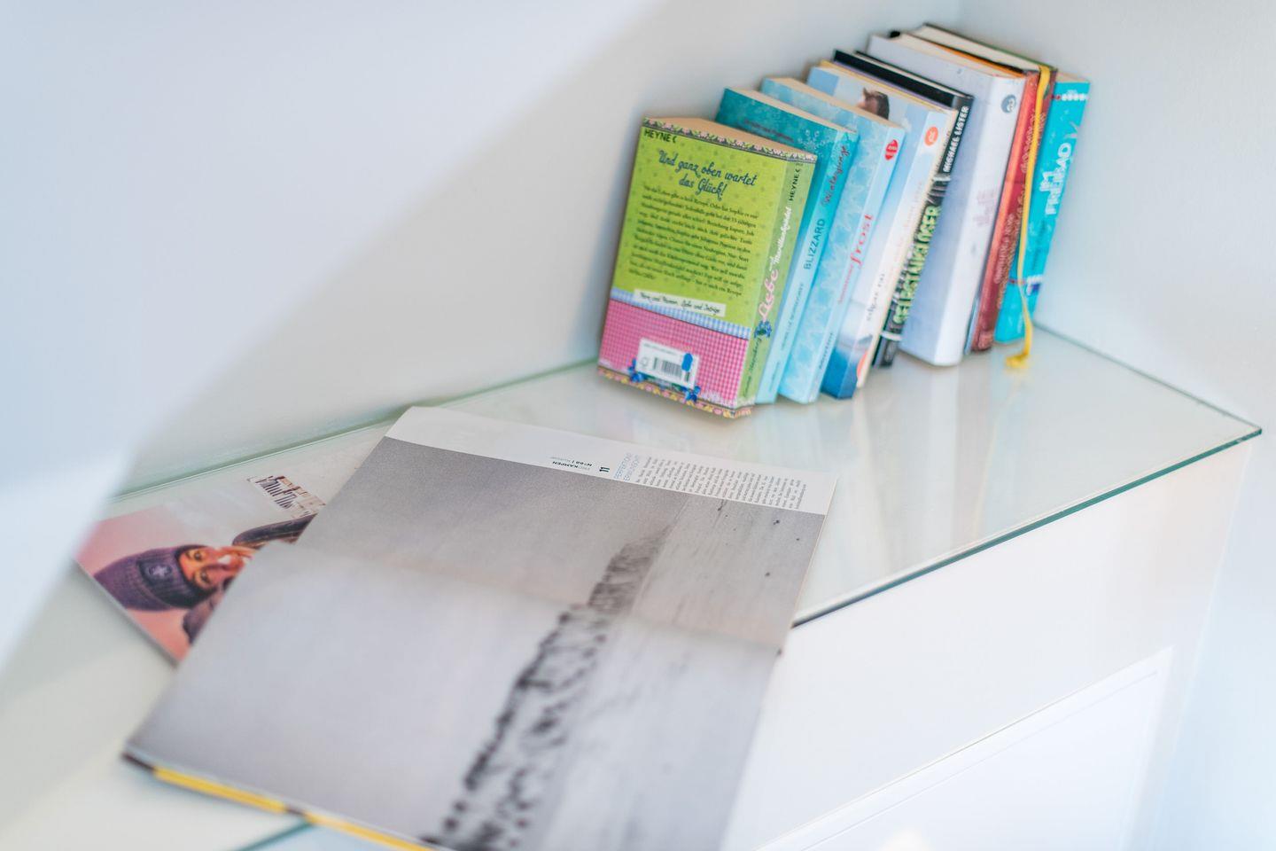Das großzügige Wohnzimmer lädt mit einem bequemen Sofa, gemütlichen Sesseln und einem großen TV zum Entspannen ein. Die stilvolle Einrichtung und das helle Ambiente schaffen eine besonders einladende Atmosphäre. Der direkte Zugang zur windgeschützten Terrasse nach Westen ermöglicht Ihnen erholsame Stunden unter freiem Himmel und bietet einen herrlichen Rückzugsort für sonnige Tage.