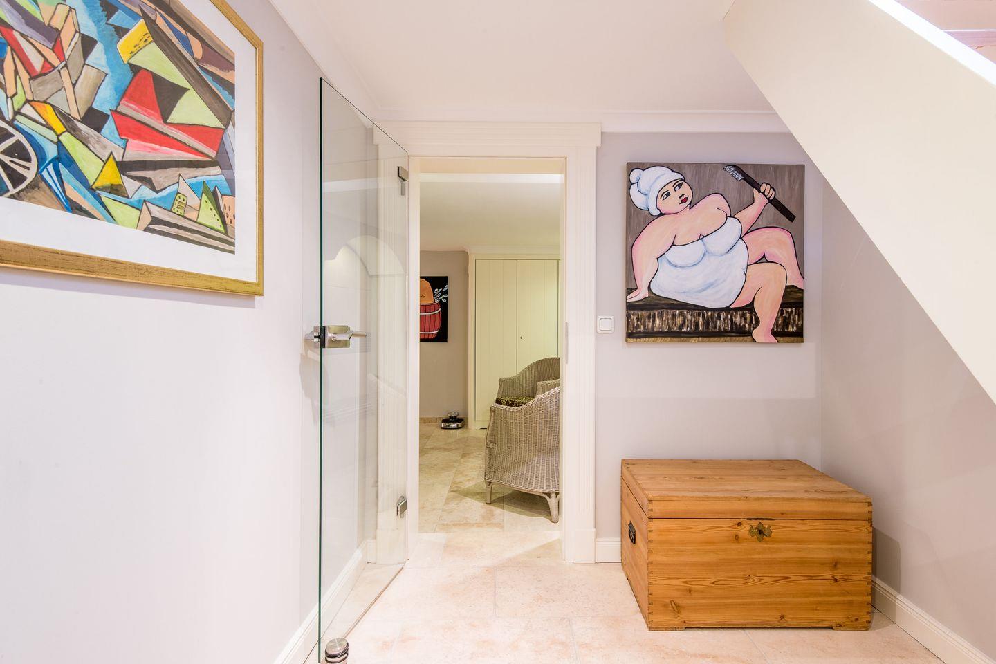 Der Eingangsbereich ist mit einem Gäste-WC ausgestattet, sodass zusätzliche Annehmlichkeiten zur Verfügung stehen. Ein Pkw-Stellplatz, Waschmaschine, Trockner, WLAN (ohne Gewähr) runden das exklusive Angebot ab und machen Ihren Aufenthalt in Wenningstedt besonders angenehm.